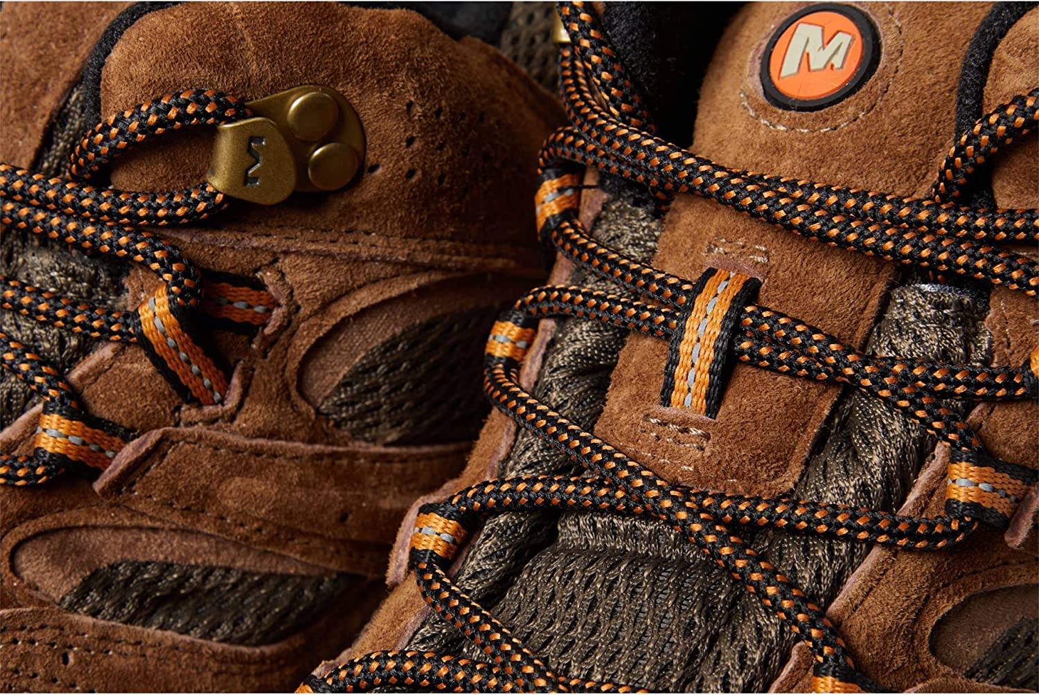 - Waterproof membrane seals out water and lets moisture escape Pigskin leather and mesh upper 100% recycled laces and webbing Bellows tongue keeps out debris Protective toe cap 100% recycled mesh lining Kinetic Fit ADVANCED removable contoured insole with reinforced heel cushioning for medium support Molded nylon arch shank Merrell Air Cushion in the heel absorbs shock and adds stability Lightweight EVA foam midsole for stability and comfort Vibram TC5+ rubber sole