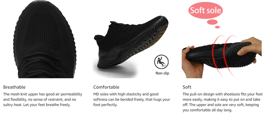 - Lightweight and breathable upper: The mesh knit upper has good air permeability and flexibility, no sense of restraint, and no sultry heat. Let your feet breathe freely.