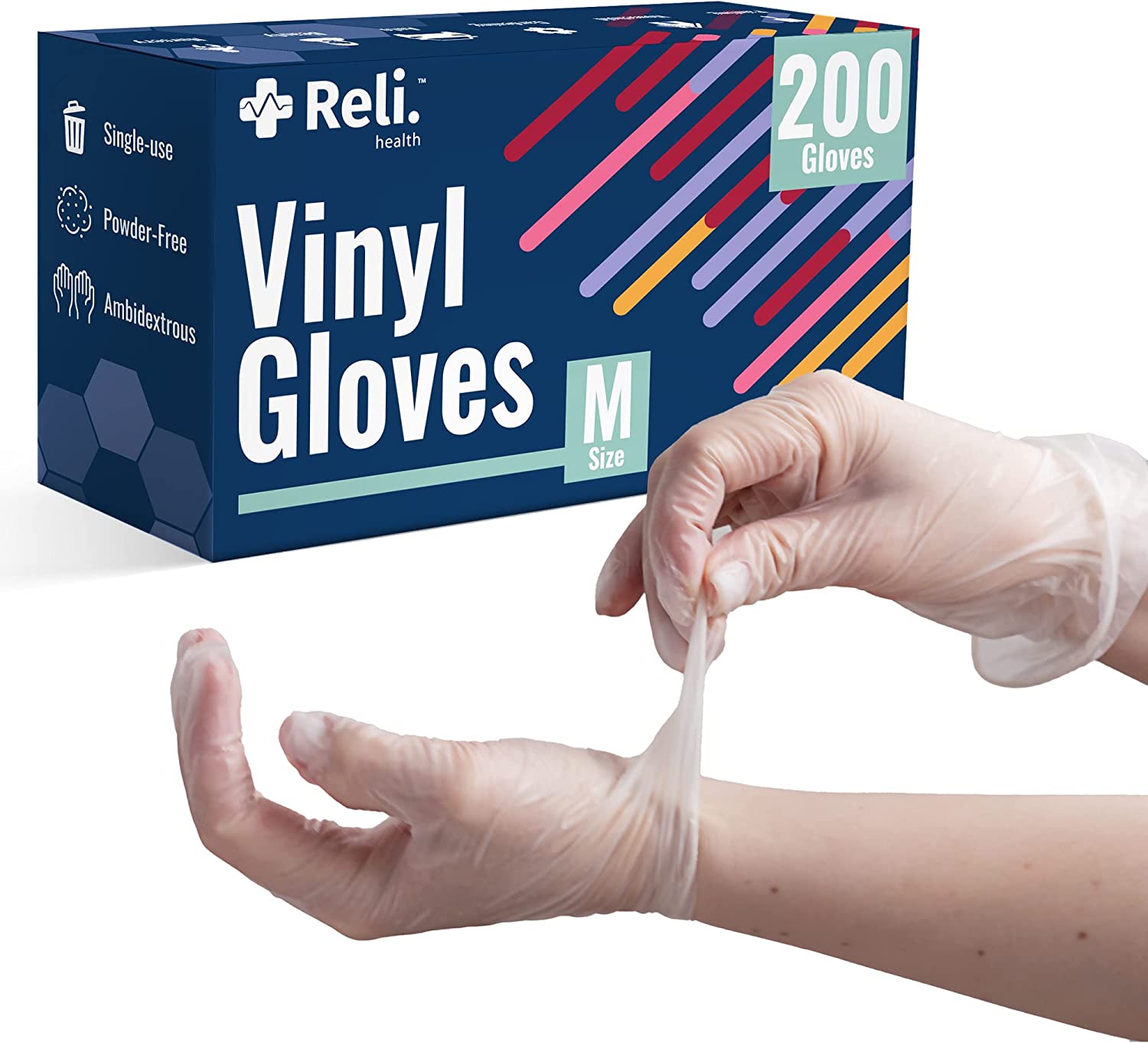 Reli. Vinyl Gloves | 200 Pack | Medium, Large, X-Large, Small | S, M, L, XL