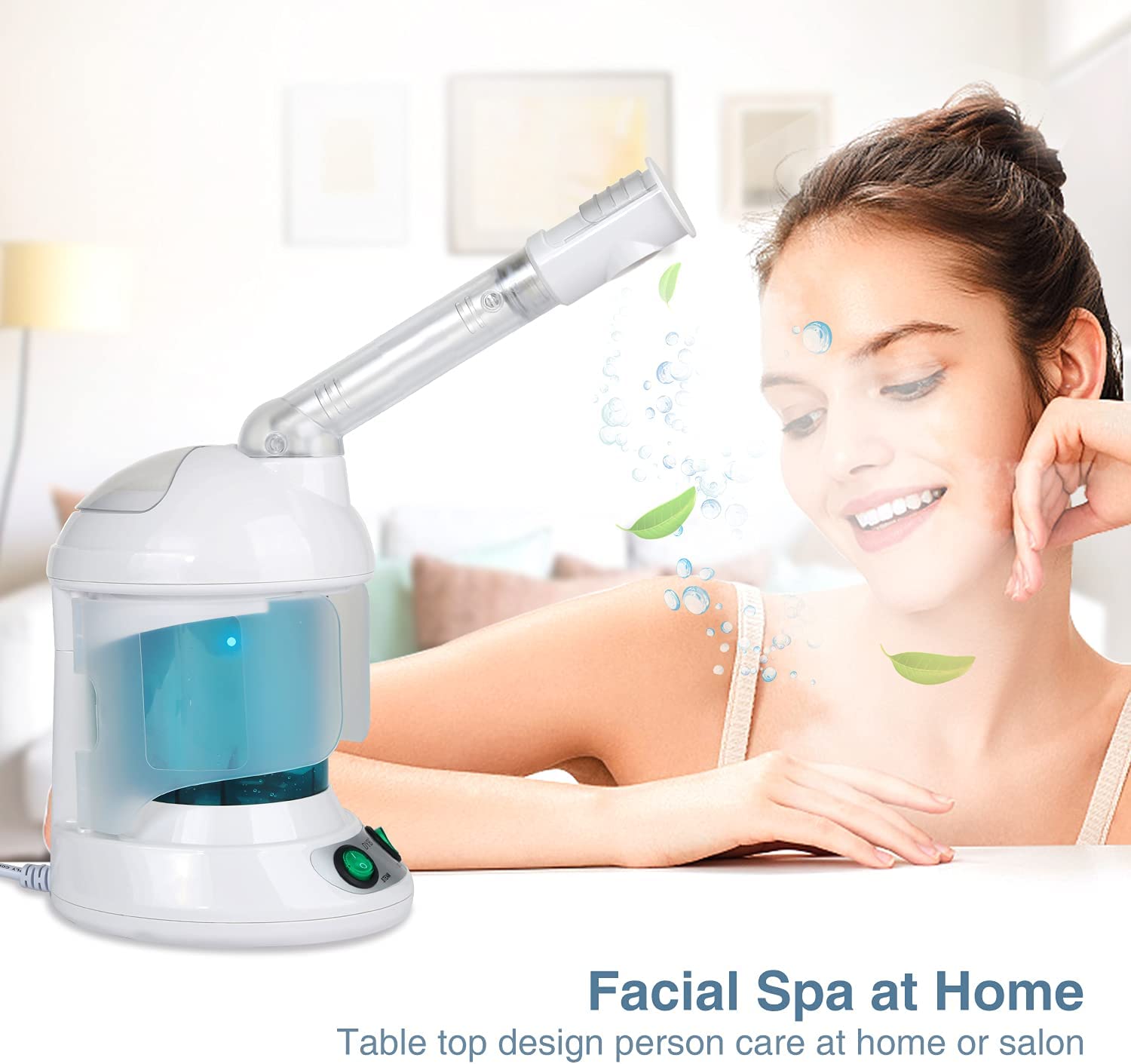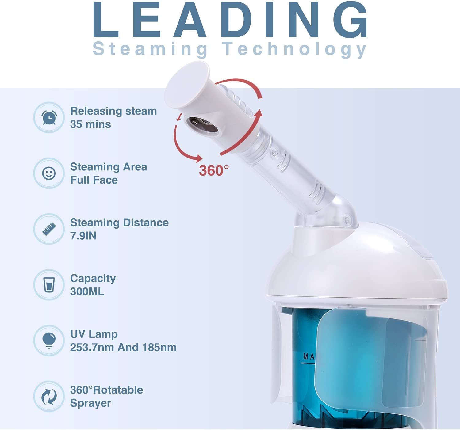 【360° Rotatable Sprayer】: The steam pipe can be rotated at any angle of 360°, you can lie down, stand and sit down to enjoy the perfect facial SPA. Please keep your face at least 7.9 inches away from the nozzle to avoid burns.