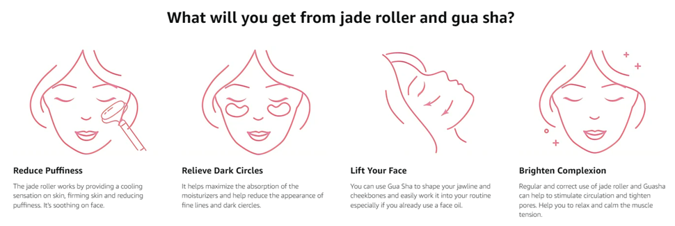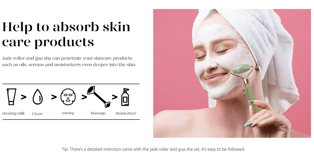 Tips: You can keep the facial jade roller and Guasha in the fridge for about 10 minutes to keep it cooler and this helps to reduce morning puffiness and get the skin refreshed