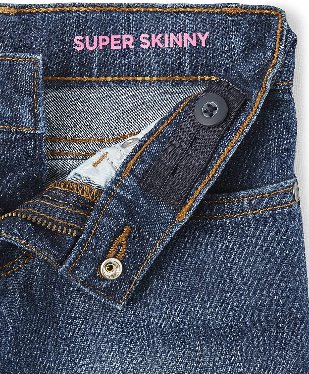 - A sleek fitted silhouette with 5-pocket styling, inner adjustable waist tabs and tagless label; snap closure with zipper fly for sizes 4-6X/7 and button closure with zipper fly for sizes 8-16