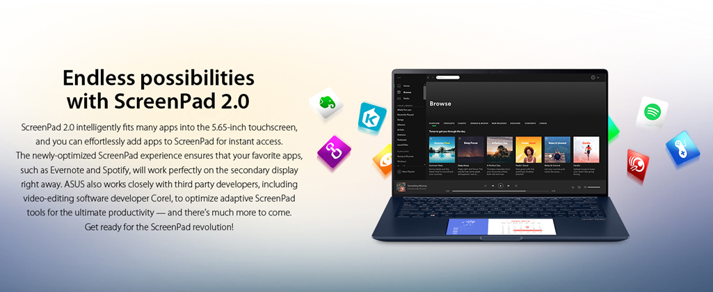 Zenbook 13 heralds a new era of Ultra portable Design, with an ultra compact, ultralight chassis. Featuring the four-sided NanoEdge display with Touch option, Zenbook 13 is 14% smaller than the previous generation Zenbook 13 (UX331) and weighs only 2.8 lbs. The new screen Pad 2.0 upgrades the traditional laptop experience, adding an interactive secondary touchscreen that enhances your productivity and gives you endless possibilities. Its intuitive smartphone-like interface lets you easily manage tasks and create your own seamless multitasking workflow. There's a series of handy Asus utility apps to boost productivity, including quick key — for one-tap automation of complex keyboard sequences — along with handwriting, number key, doc Xpert, slide Xpert and sheet Xpert. Screen Pad 2.0 intelligently fits many apps into the 5.65-Inch touchscreen, and you can effortlessly add apps to screen Pad for instant access. The newly-optimized screen Pad experience ensures that your favorite apps, such as ever note and spotty, will work perfectly on this secondary display right away, without the need for a screen pad-specific version. Asus also works closely with third party developers, including video-editing software developer Corel, to optimize Adaptive screen Pad tools for the ultimate productivity — and there's much more to come. The actual transfer speed of USB 3.0, 3.1 (Gen 1 and 2), and/or Type-C will vary depending on many factors, including the processing speed of the host device, file attributes and other factors related to system configuration and your operating environment.