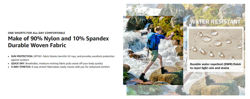 • ADVANCED TECHNOLOGY: 4-way stretch, breathable fabric wicks moisture away from your skin to keep dry all day. Durable water repellent finish to repel light rain and stains