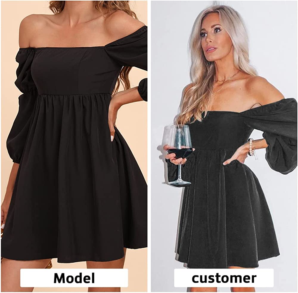• Features: Square Neck, Puff Long Sleeve with Elastic Cuffs(Elastic Band in the Middle of Sleeves), Smocked Back, High Waist, Invisible Zipper on Back, Mini Length.