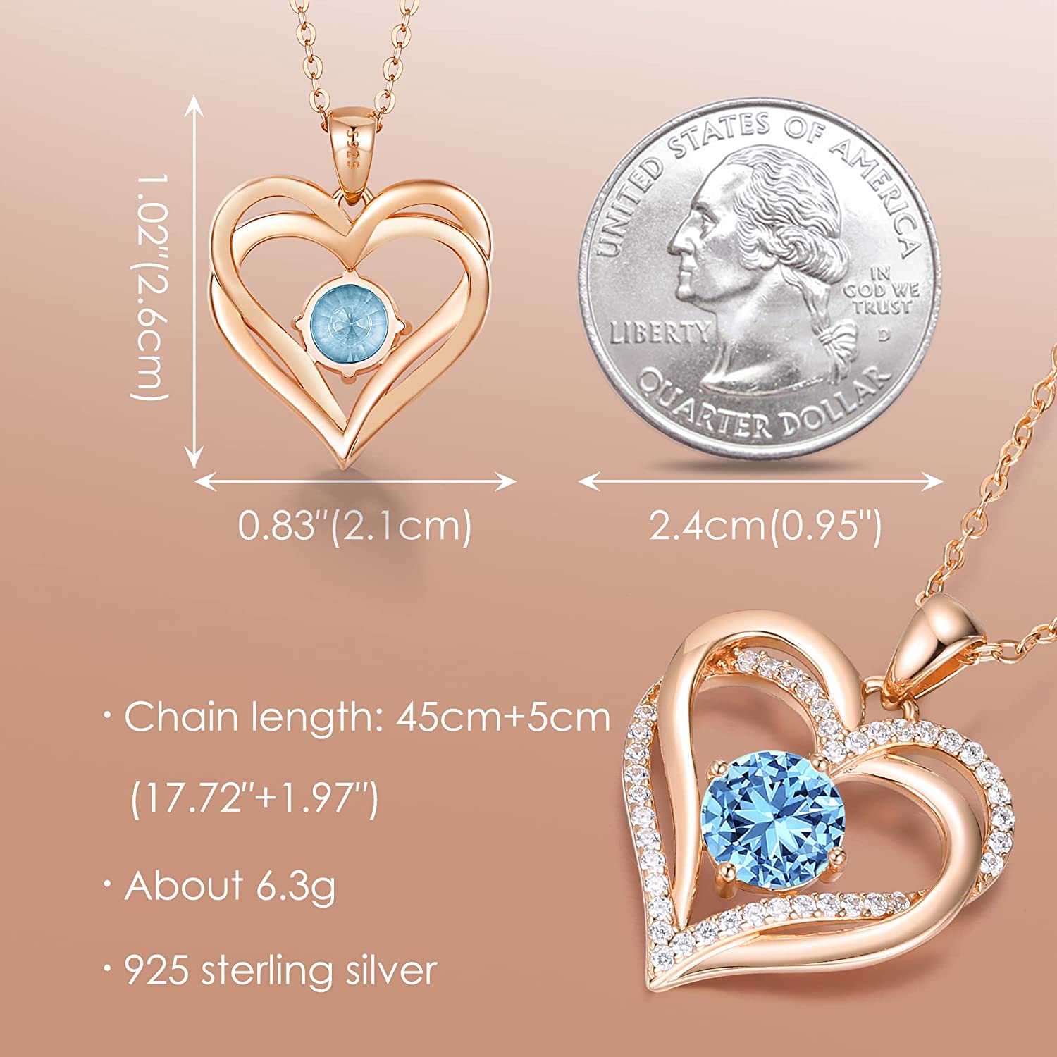 LOUISA SECRET Love Heart Birthstone Necklaces for Women 925 Sterling Silver Rose Gold Pendant Forever Diamond Jewelry Valentine's Day Christmas Anniversary Birthday Gifts for Wife Girlfriend Mothe