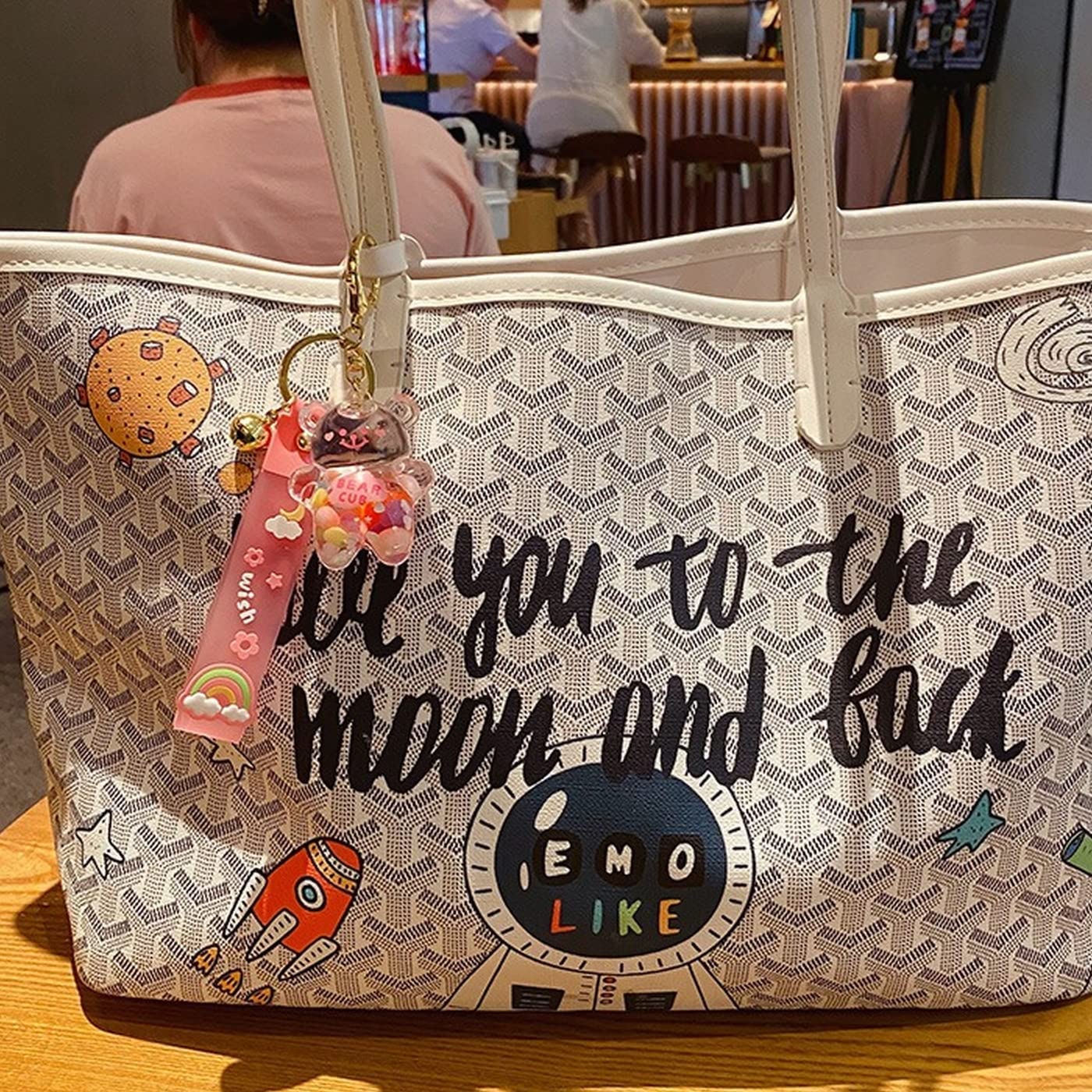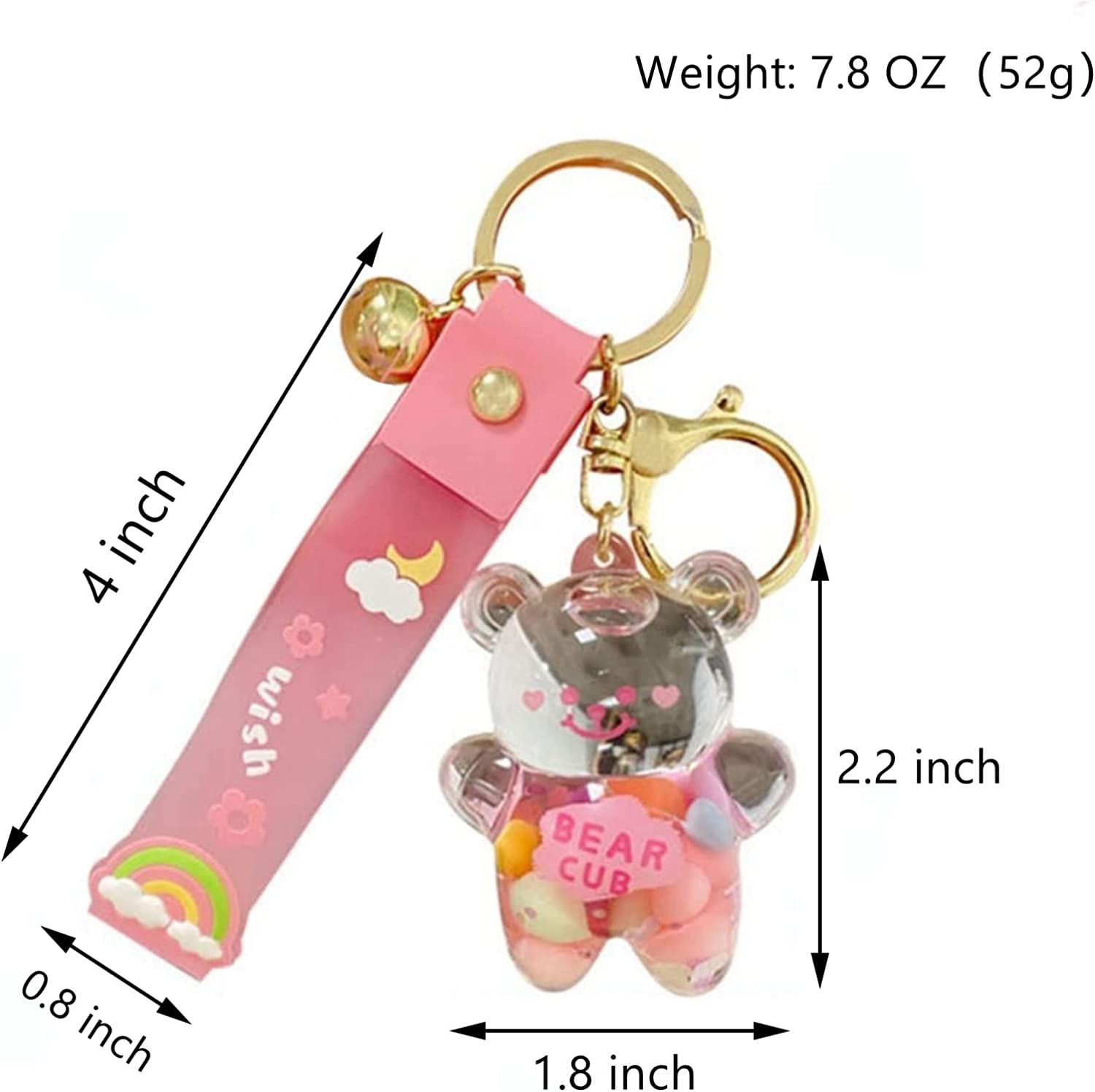 Kawaii Keychain Bear Liquid Floating Quicksand Cute Keychains Bag Charm Wristlet Bracelet Key Ring for Women Girl