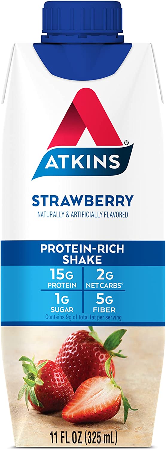 STRAWBERRY SHAKE. Enjoy this sweet and creamy shake as part of a balanced diet. Includes 3 packs of 4 ready-to-drink 11 oz shakes. Shelf stable - no need to refrigerate