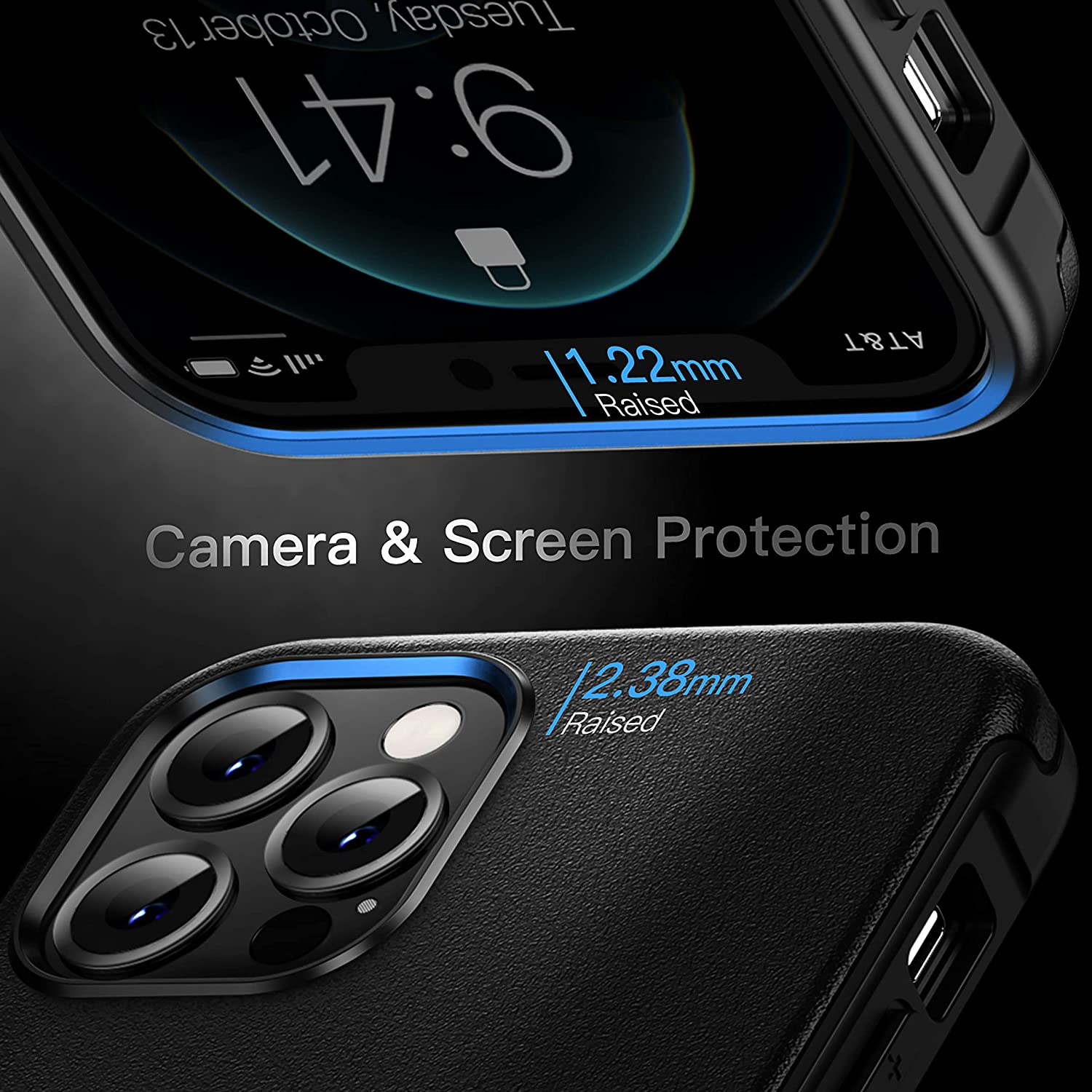 - ?️【Camera & Screen Protection】The raised bezels protect the screen and camera from damage during daily use and drops. The thoughtful design of the 2.38mm edge above the camera and the 1.22mm bezel above the screen provides multiple protection for your valuable phone.
