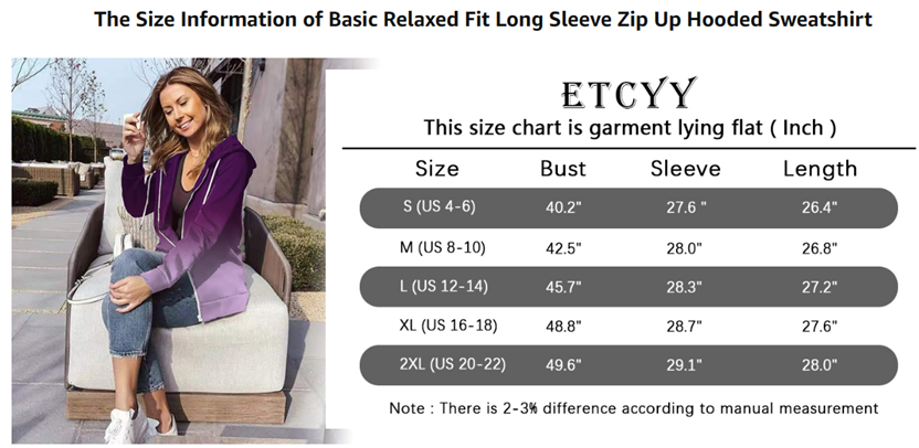 ETCYY Women's Color Block Zip Up Hoodie Sweatshirt Long Sleeve Causal Drawstring Oversized Jacket with Pockets