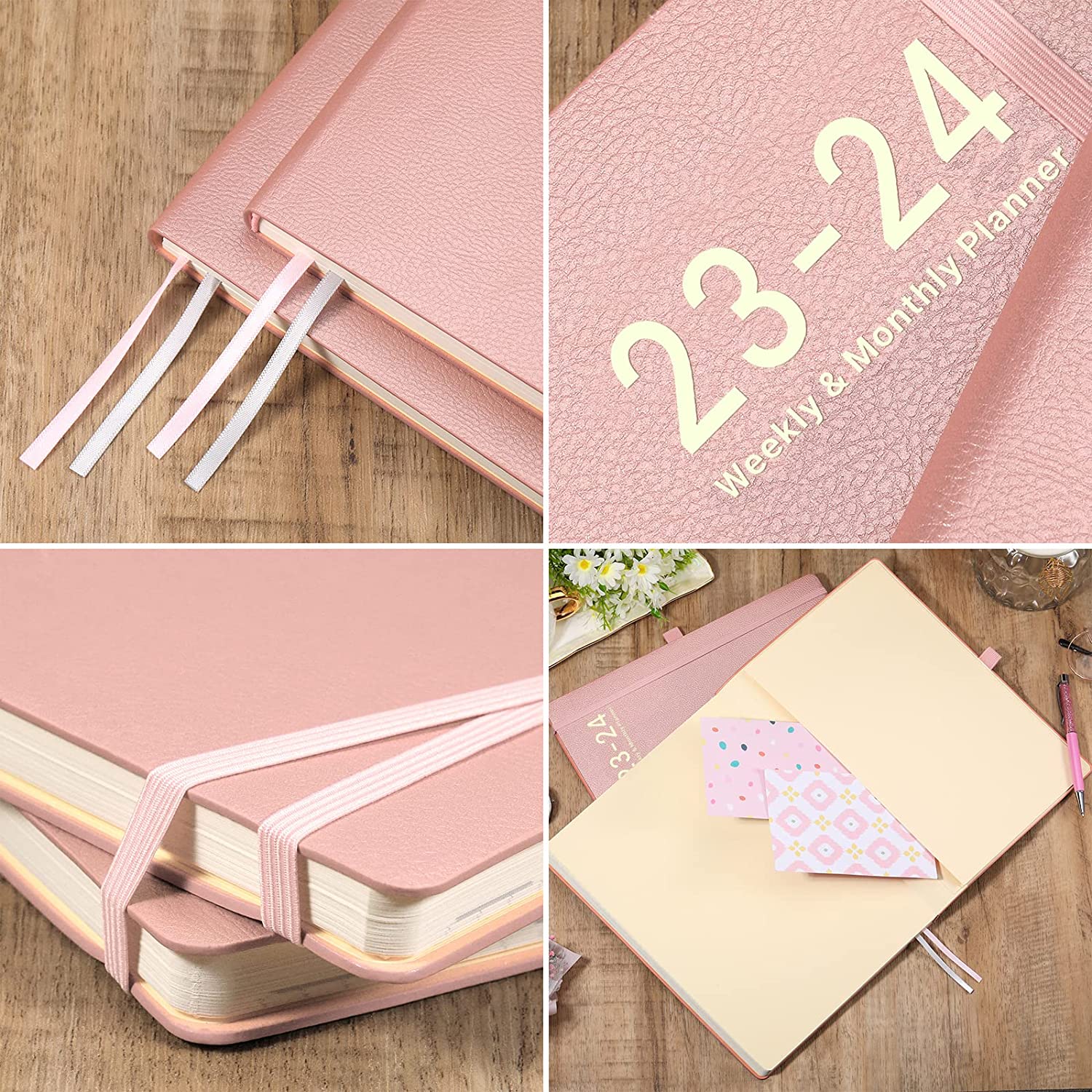 Planner 2023-2024 - 2023-2024 Academic Weekly Monthly Planner, July 2023 - June 2024, 8.5" x 11", Leather Cover with Thick Paper, Back Pocket with Notes Pages - Rose Gold