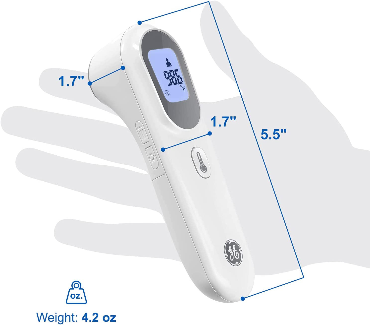 GE No-Touch Digital Forehead Thermometer for Adults, Kids and Babies, Non-Contact 2-in-1 Infrared Temperature Scanner, Instant Accurate Reading, LCD Screen, 1-Button Operation & Fever Alert (TM3000)