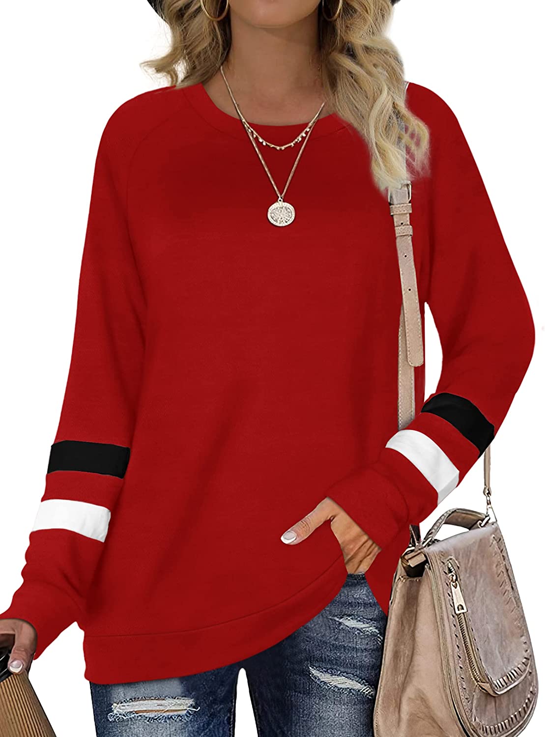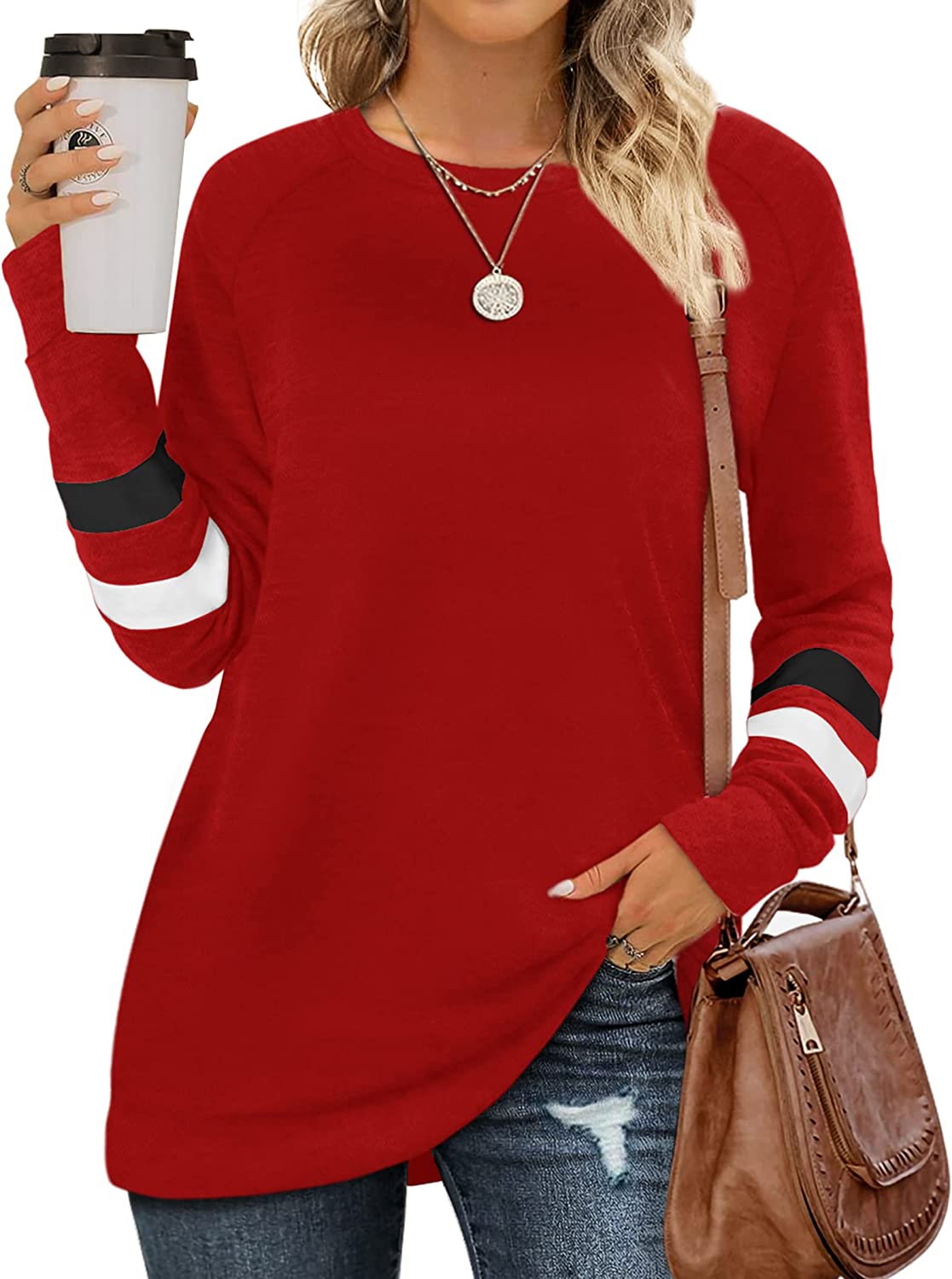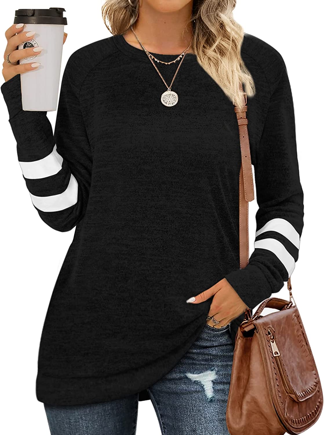 • ✦Designs: Classic Crewneck/Round Neck Sweatshirts, Striped on the Long Sleeve Sweaters, Loose Fit Tunic Tops. The Simple Shirts is Casual Chic and Never out of Date.