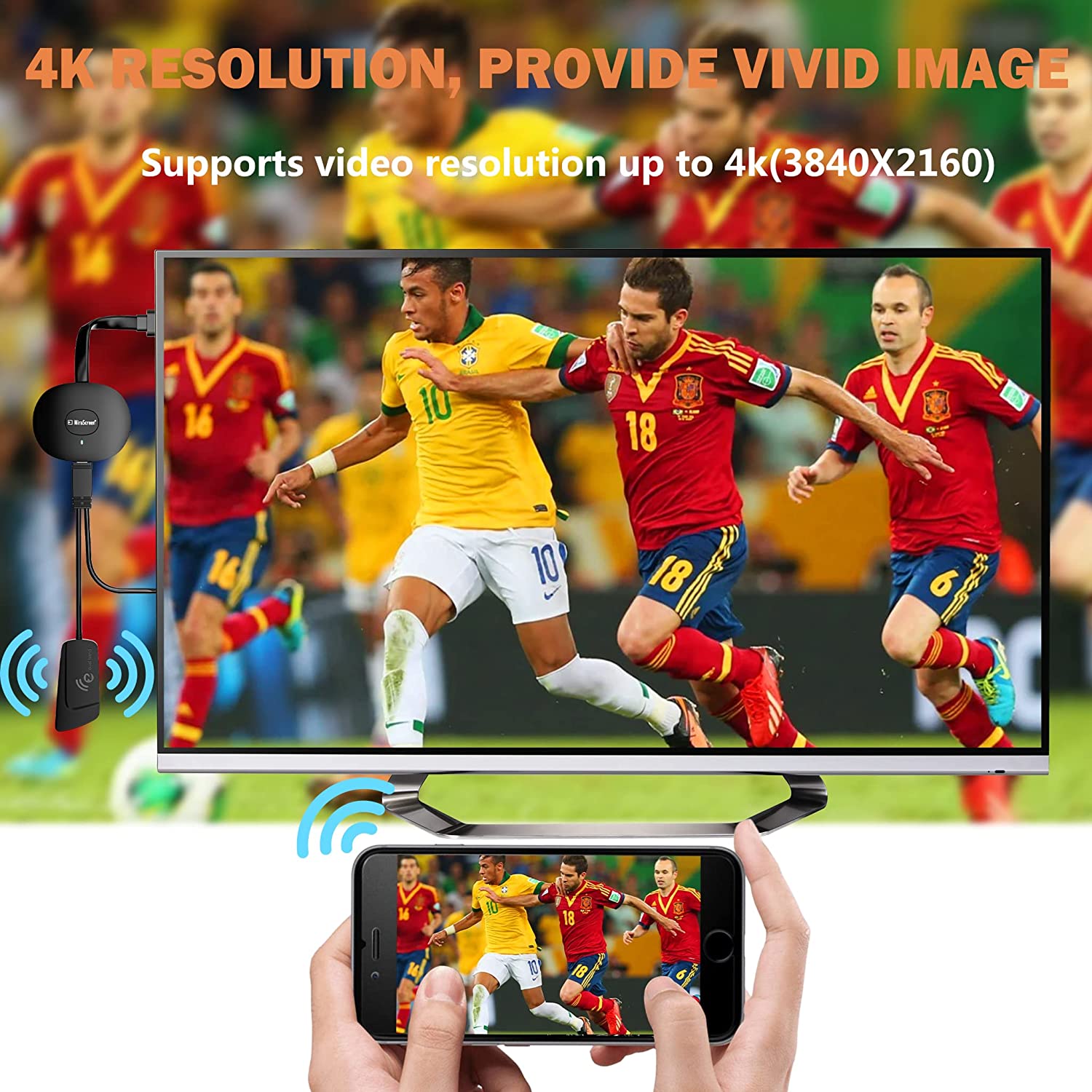 This TIMBOOTECH 4K wireless HDMI adapter can display every particle clearly, casting or mirroring movies/TV/video/audio/photos/music/games and presentations go to the big screen, suitable for home entertainment/ business/ educations/ training.