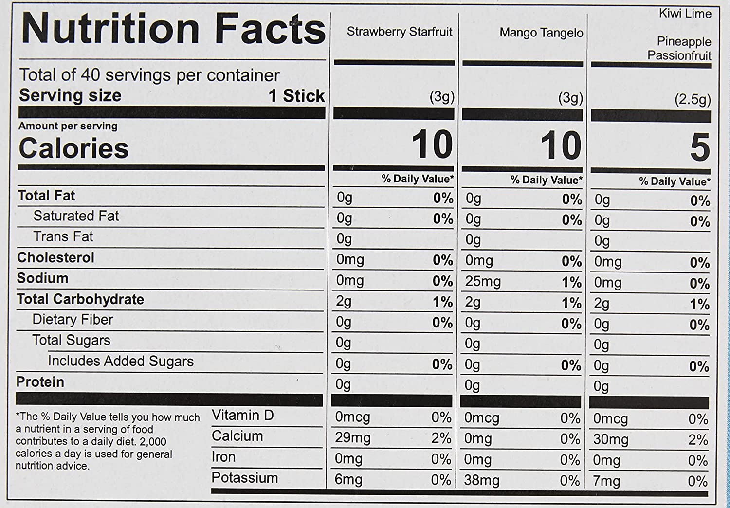 VARIETY PACK –With 40 sticks included, you’ll get a taste of 4 different fruity flavors including Strawberry Starfruit, Mango Tangelo, Kiwi Lime, and Pineapple Passionfruit