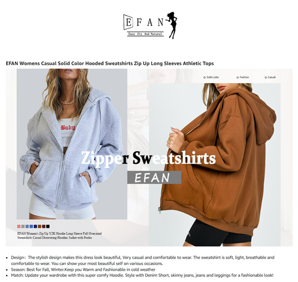 • ★Tips: Please Refer to the EFAN Size Chart before Ordering(NOT AMAZON SIZE). Any other questions, please contact us freely