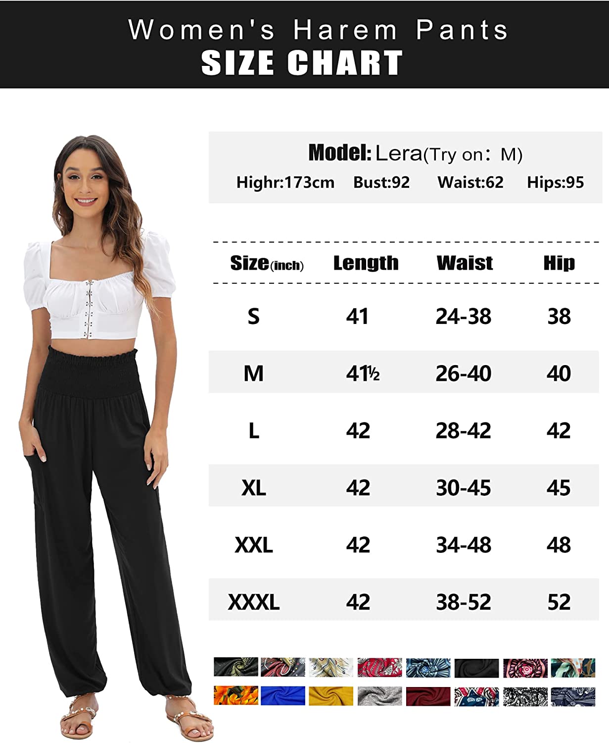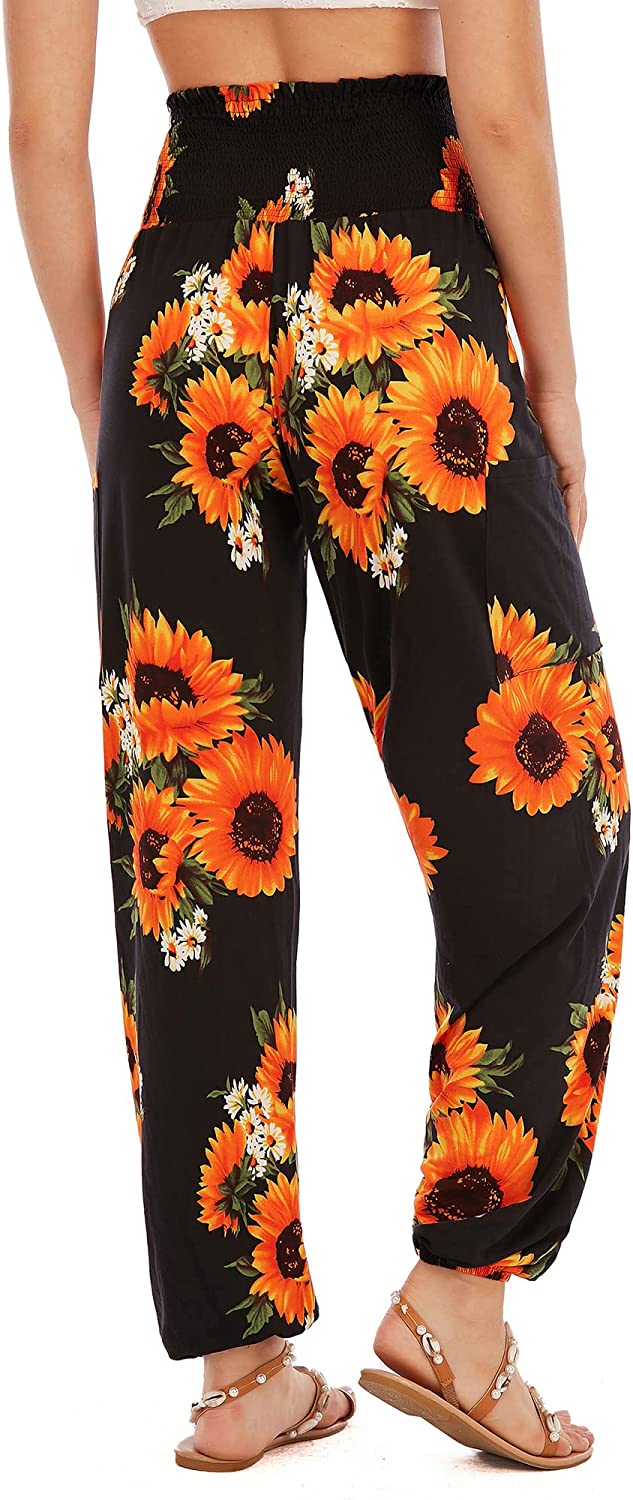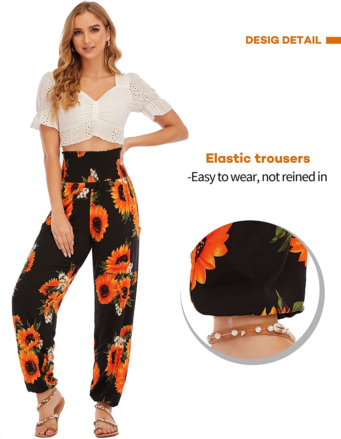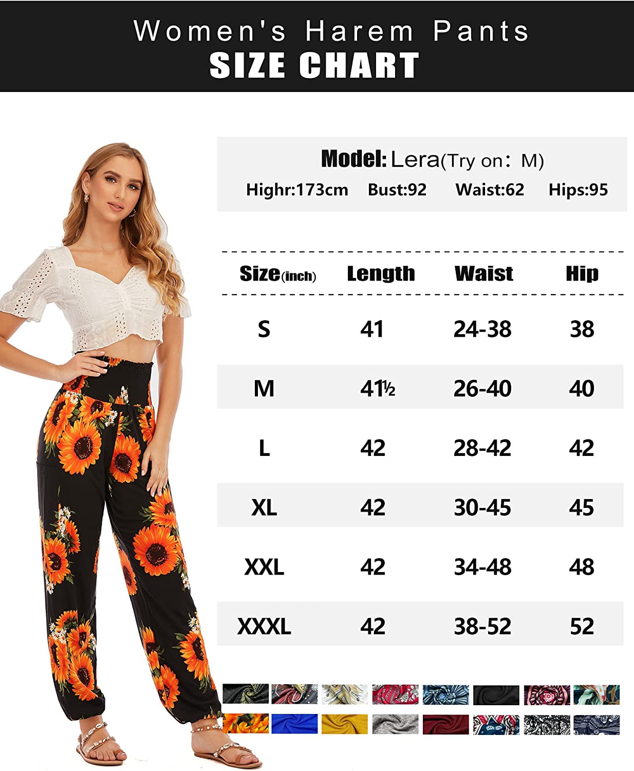 • Features: Women harem pants boho palazzo hippie floral yoga trouser, High waist design, with a combination elastic in waist,Elastic waist and ankle.2 large side pockets Loose style boho pants fit for many shapes. Simple and classic style .