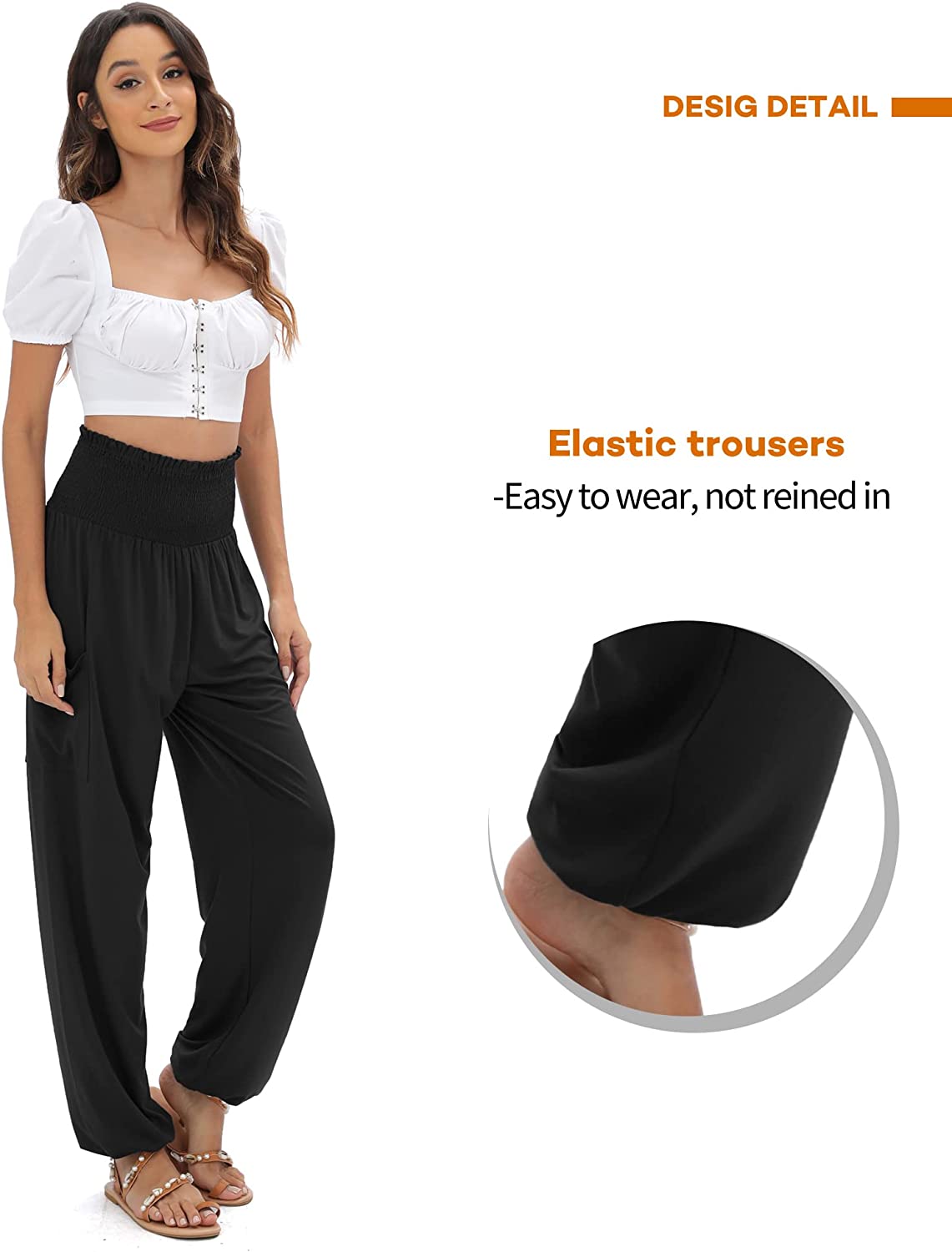 QIANXIZHAN Women's Harem Pants, High Waist Yoga Boho Trousers with Pockets