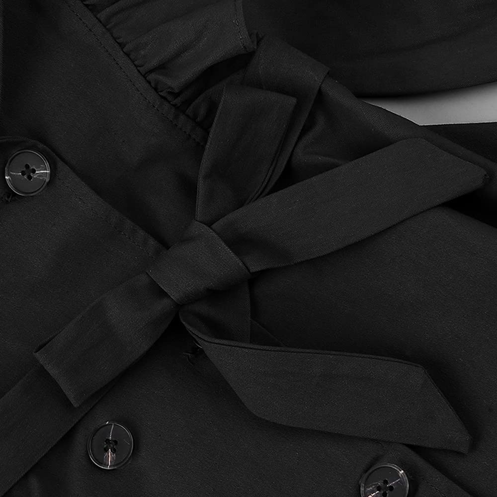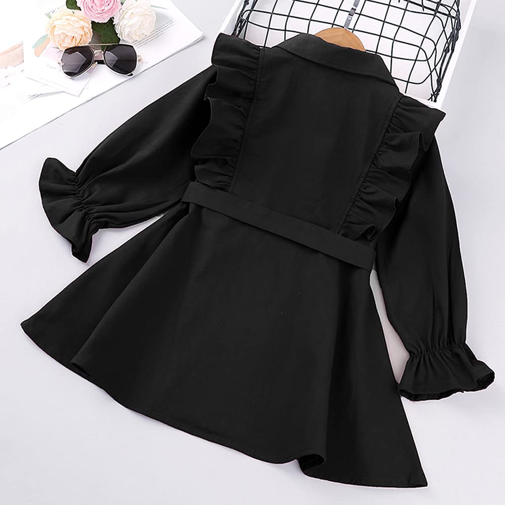 Feature: This baby girl's trench coat is button-down closure. Adjustable bow belt. Please notice that the jacket doesn’t have any belt loops to hold the belt. The tie around the waist is removable. You can also open it as a coat. Ruffle long sleeve. Elastic cuffs, Give your princess plenty of space to grow. Playful and adorable. Make your little girl adorable and charming, never out of style. A must-have for the princess autumn/winter wardrobe