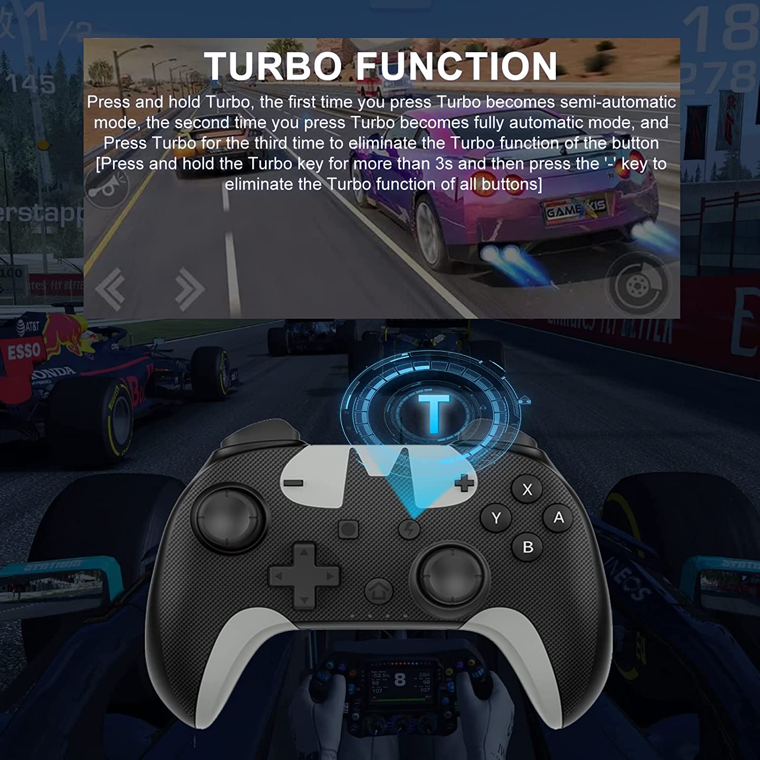 ?【Dual Motors and Six-Axis Gyroscope for Switch】This gaming controller has a one-button connection to the Switch function, you can easily connect by long pressing the c button. The super sensitive 6-axis gyro sensor provides precise motion control. Plus dual vibration motors with timely shock feedback, switch controller make you feel the ultimate gaming experience.