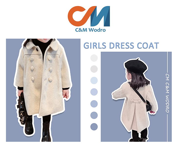 ??【Lightweight, Easy to Care】Cotton Blend, pea coats for toddler girls. Handwash only. makes your kids warm in autumn, spring and warm winter seasons.