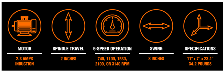 | Included Components | 2.3-Amp 8-Inch 5-Speed Benchtop Drill Press |