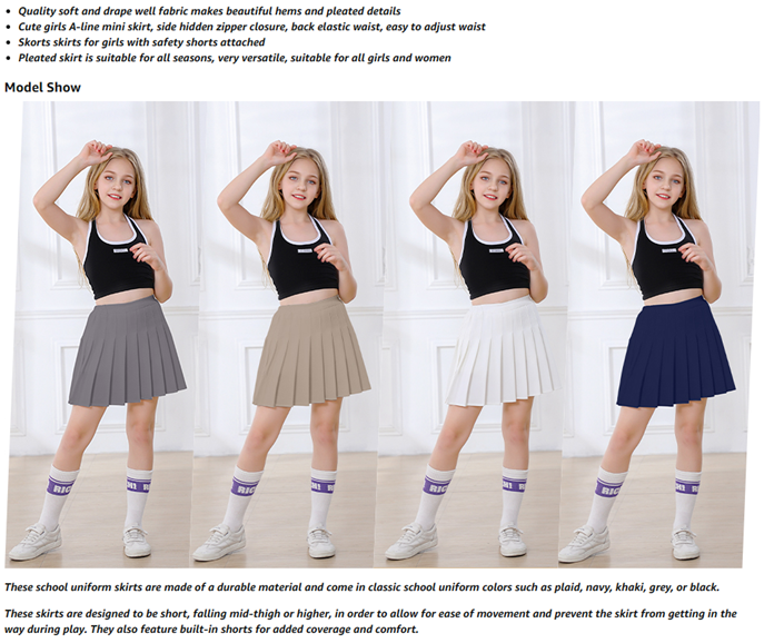• ❤Design: Cute girls A-line mini skirt, side hidden zipper closure, back elastic waist, easy to adjust waist