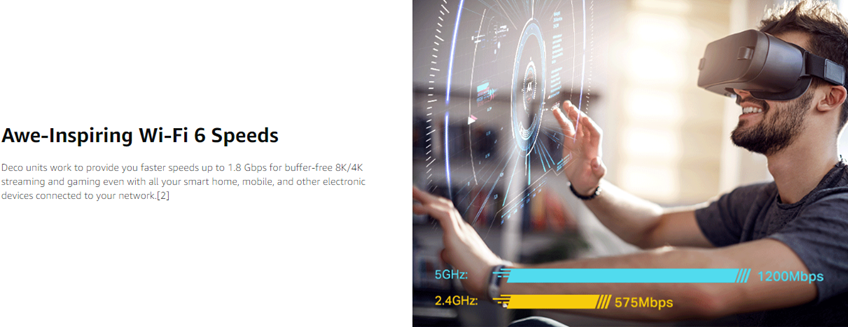 Armed with Wi-Fi 6 technology, Deco whole home mesh WiFi is designed to deliver a huge boost in coverage, speed, and total capacity. Get on the latest mesh WiFi to enjoy the future