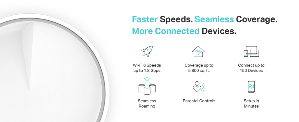 • Wi-Fi 6 Mesh Wi-Fi - Next-gen Wi-Fi 6 AX1800 whole home mesh system to eliminate weak Wi-Fi for good