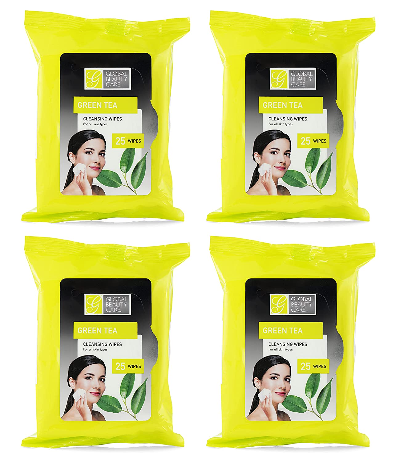 Global Beauty Care Bulk Cleansing Wipes Premoistened 4 Pack of Green Tea Cleansing Cloths Makeup Removal Wipes - Great For Travel Toiletries - 100 ct.(4-Pack)