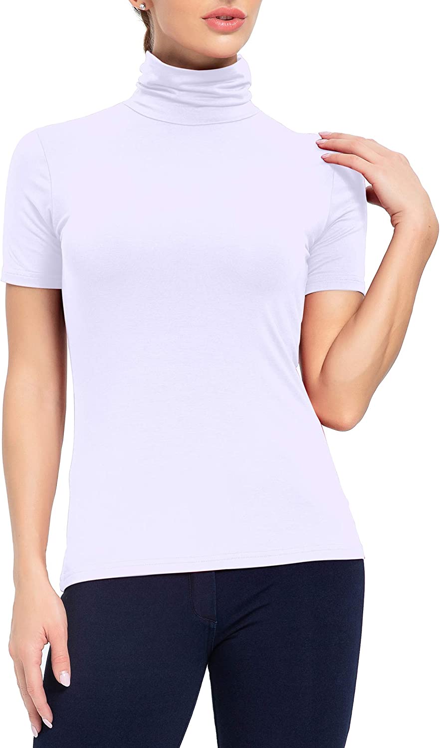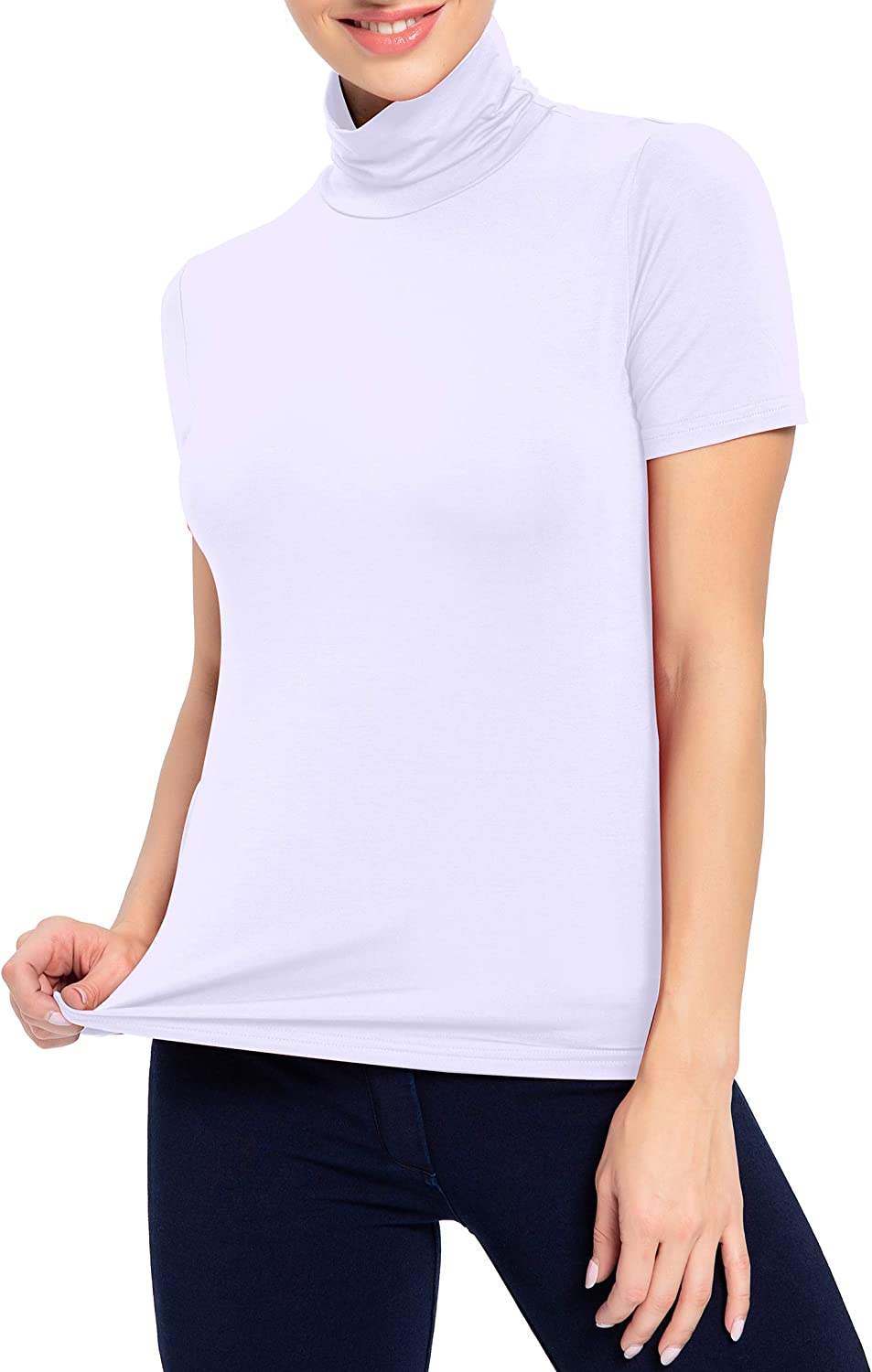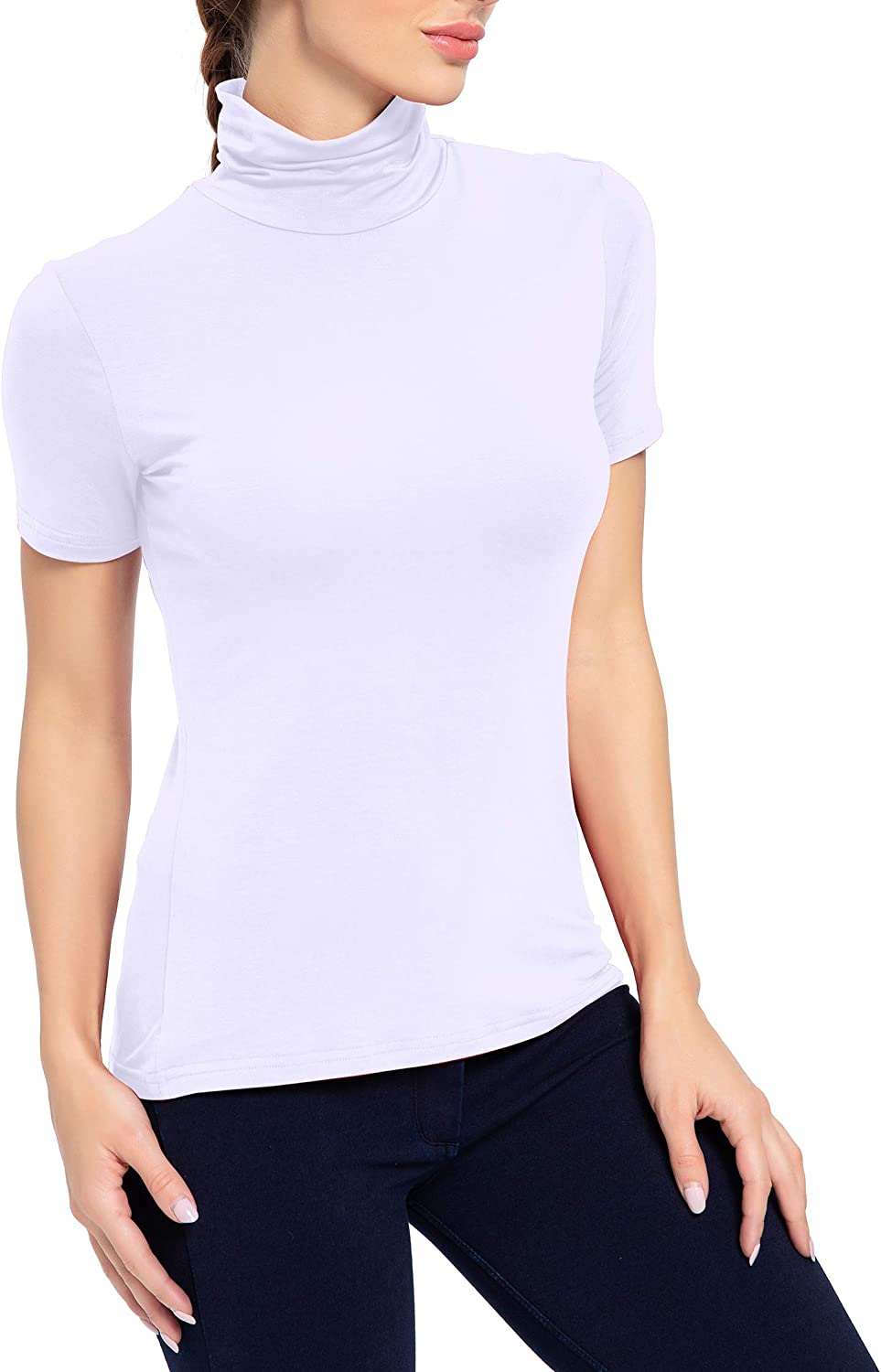 AUHEGN Women's Mock Turtleneck Top Short Sleeve Lightweight Active T-Shirt (S-XXL)