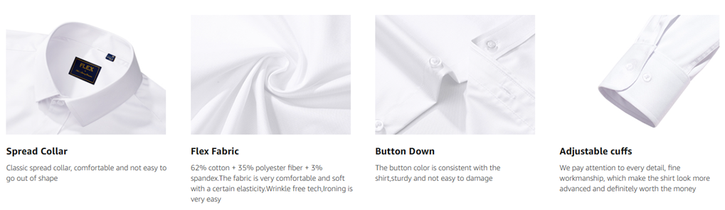 【Flex Fabric】The long sleeve dress shirt is made of stretch fabric,makes you move body easier;soft and comfortable with good breathability