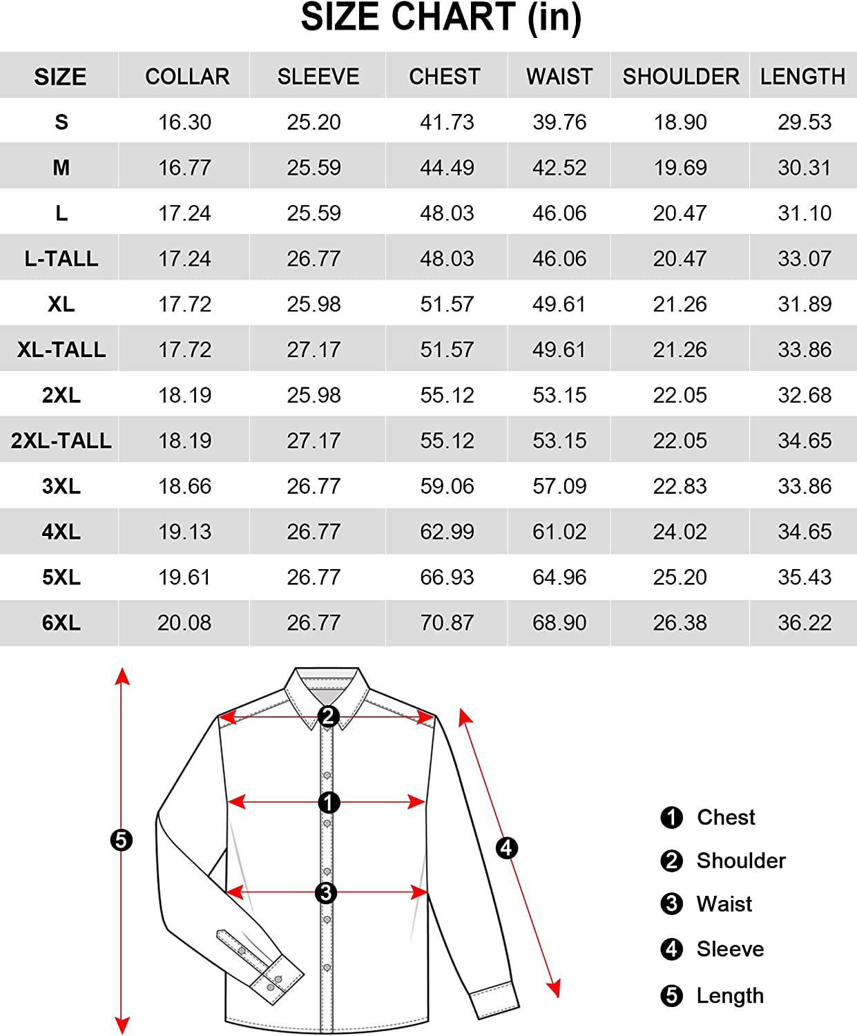 【Occasion】Business/Wedding/Party/Dating, whether for formal occasions or daily casual, this mens dress shirt is a perfect choice; it is also an ideal gift for family, lovers and friends