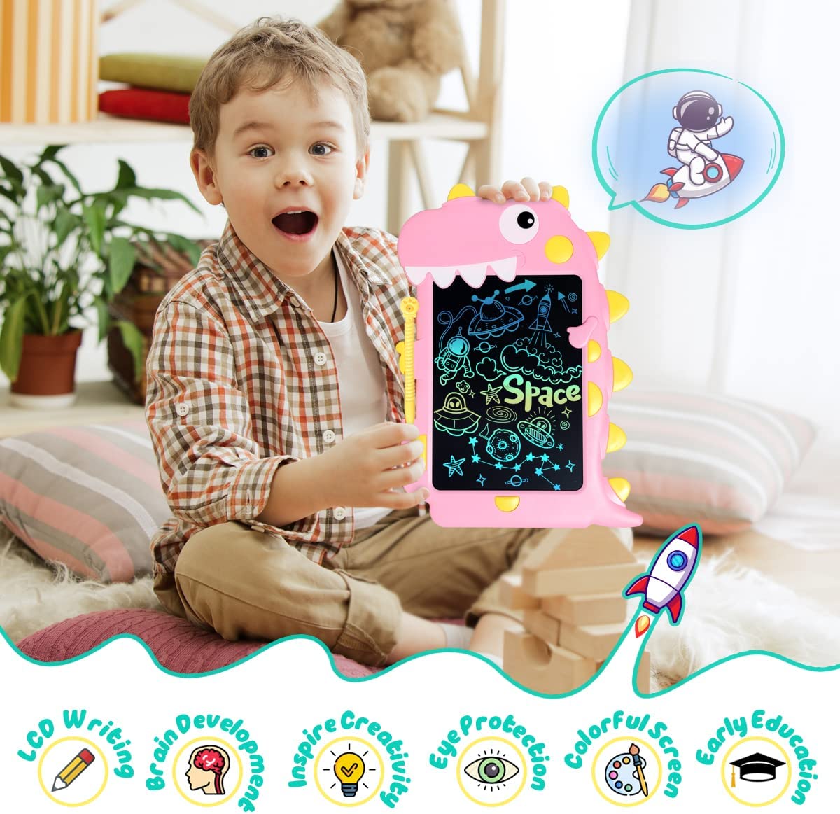 ?【Gift for Kids】Kids writing tablet has a cartoon shape and cute design, which is even more popular with children. What if you are thinking about giving the children a gift? Then this will be a great choice!