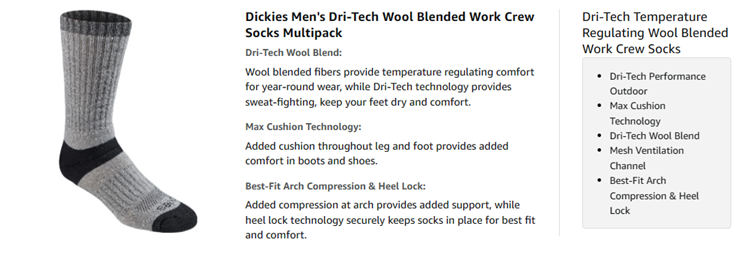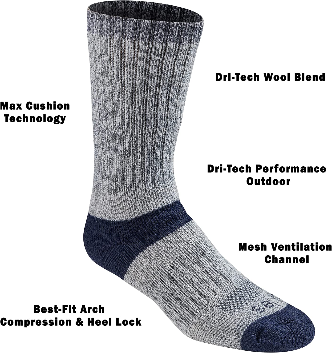 - Dri-Tech Wool Blend: Wool blended fibers provide temperature regulating comfort for year-round wear, while Dri-Tech technology provides sweat-fighting, keep your feet dry and comfort.