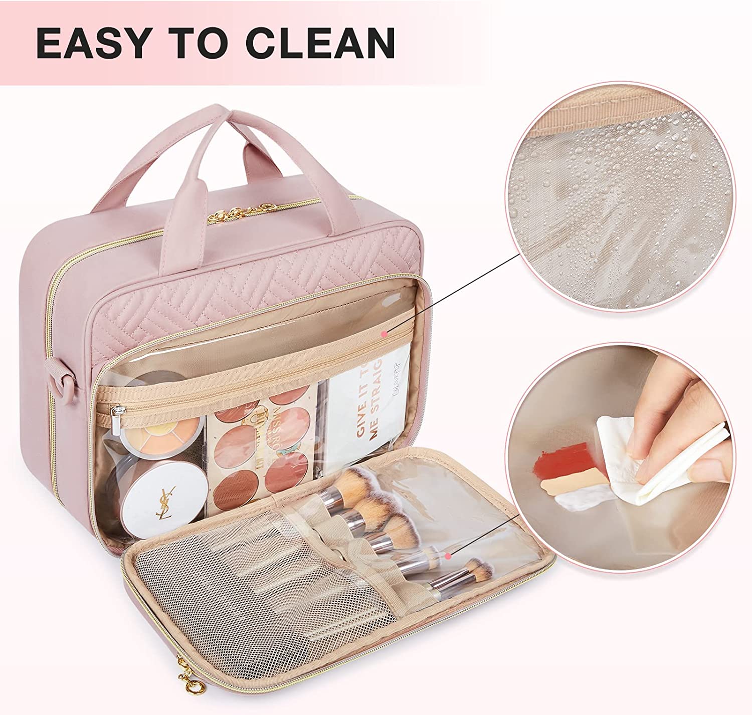 Convenient to Use - See-through zip pockets and main compartment for providing clear overview of contents. The top handle and detachable shoulder strap make it easy to carry. Two-way zipper closure for quick access.