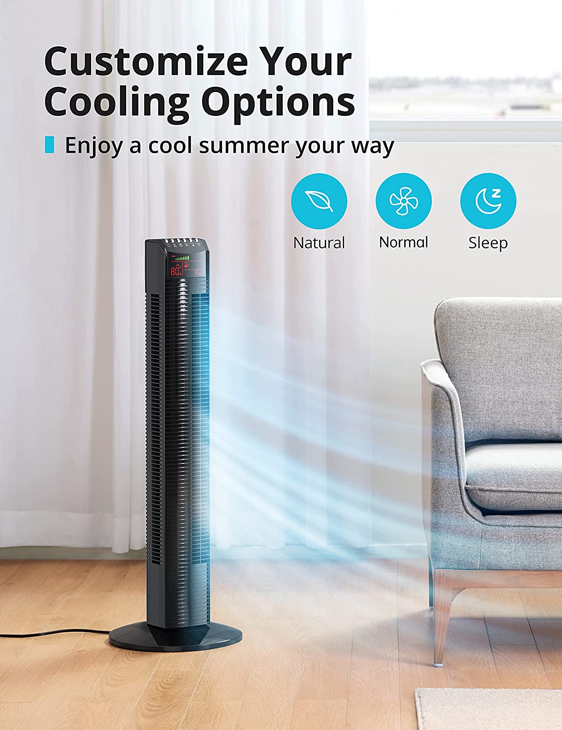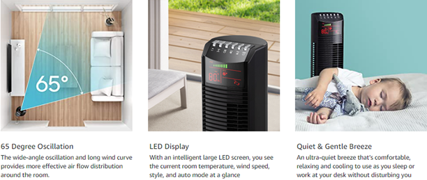 - Safe & Reliable: With ETL certification, the standing fan is safe for you and your family to use as the narrow fence protects children and pets, and the oscillating tower fan automatically turns off for your health when the ambient temperature is lower than 24°C / 75.2°F