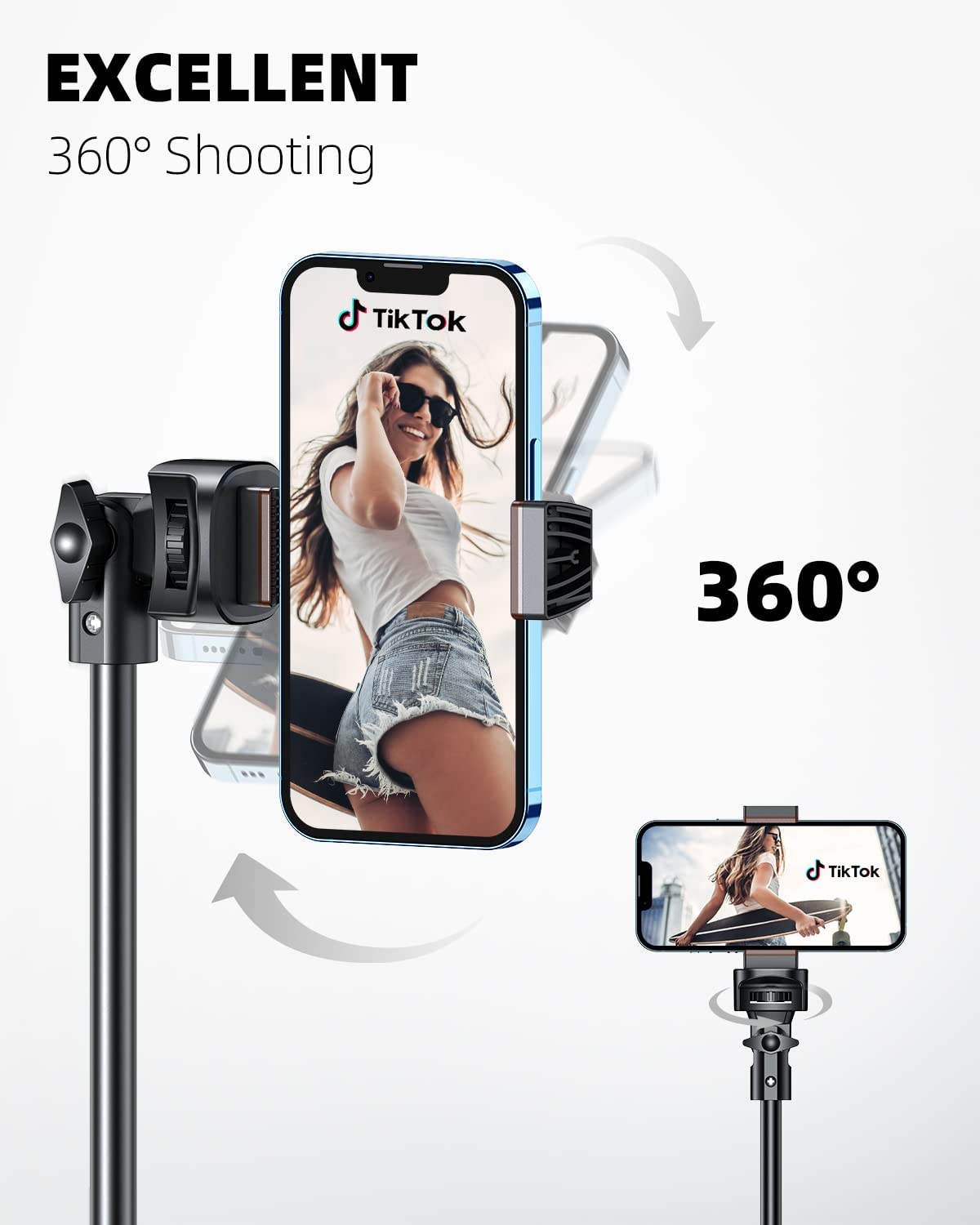 - Wireless Shooting, Free Creation: With updated sensor chip, the wireless clicker can connect to your phone in 1 second, no traditional disconnecting problem. Taking satisfying photos and videos within 33ft/10m is piece of cake with this cell phone tripod.
