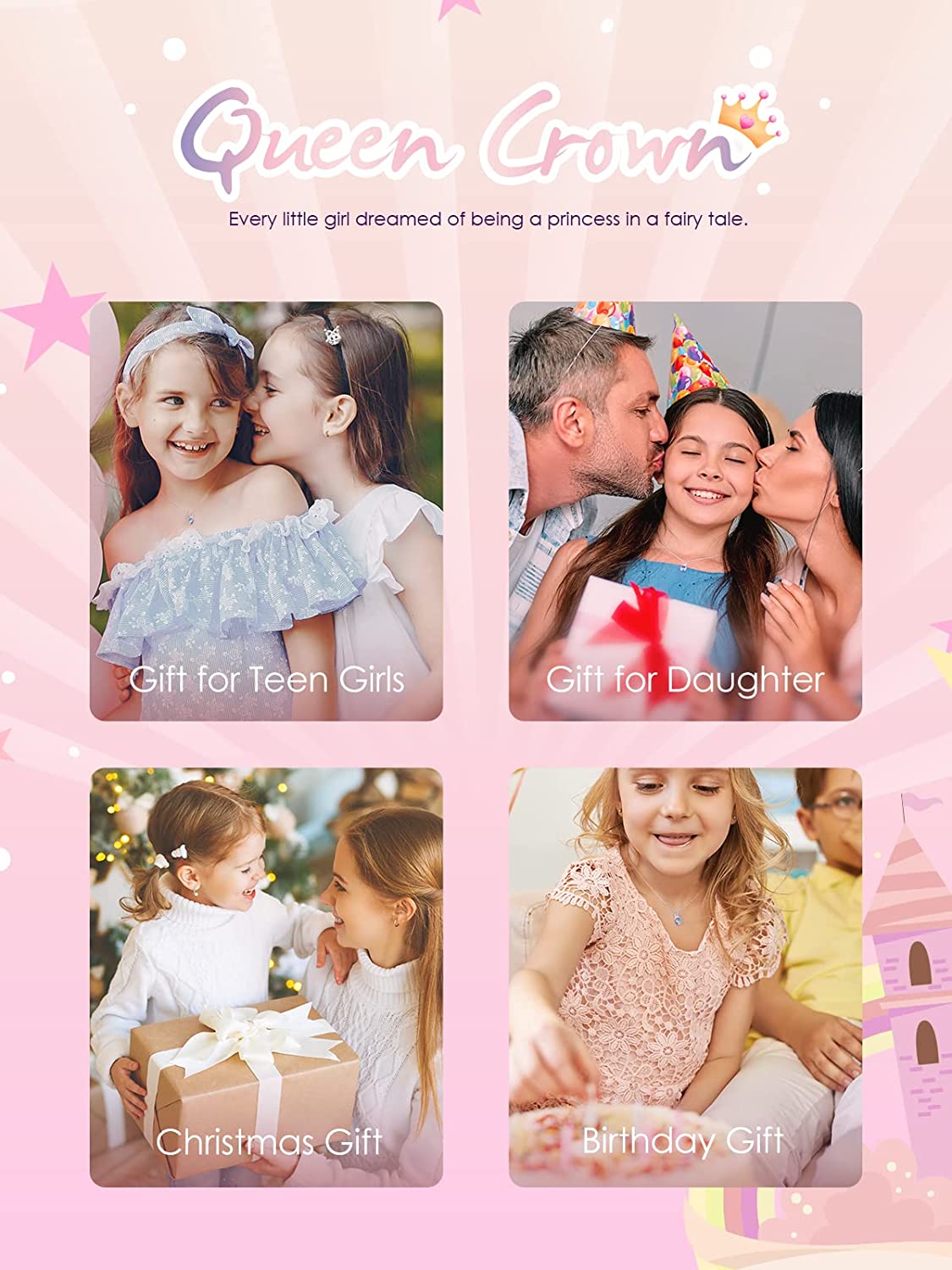DAINTY NECKLACE’S SIZE: This 0.75”×0.4” heart pendant is sweet and exquisite for little girls. The crown pendant has a 15.75”+2” adjustable chain and can be worn as a clavicle necklace at birthday party, dance, dinner or family gatherings.