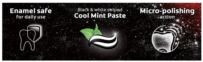 • Cool Mint toothpaste is a black and white striped paste that freshens breath and leaves your mouth feeling clean