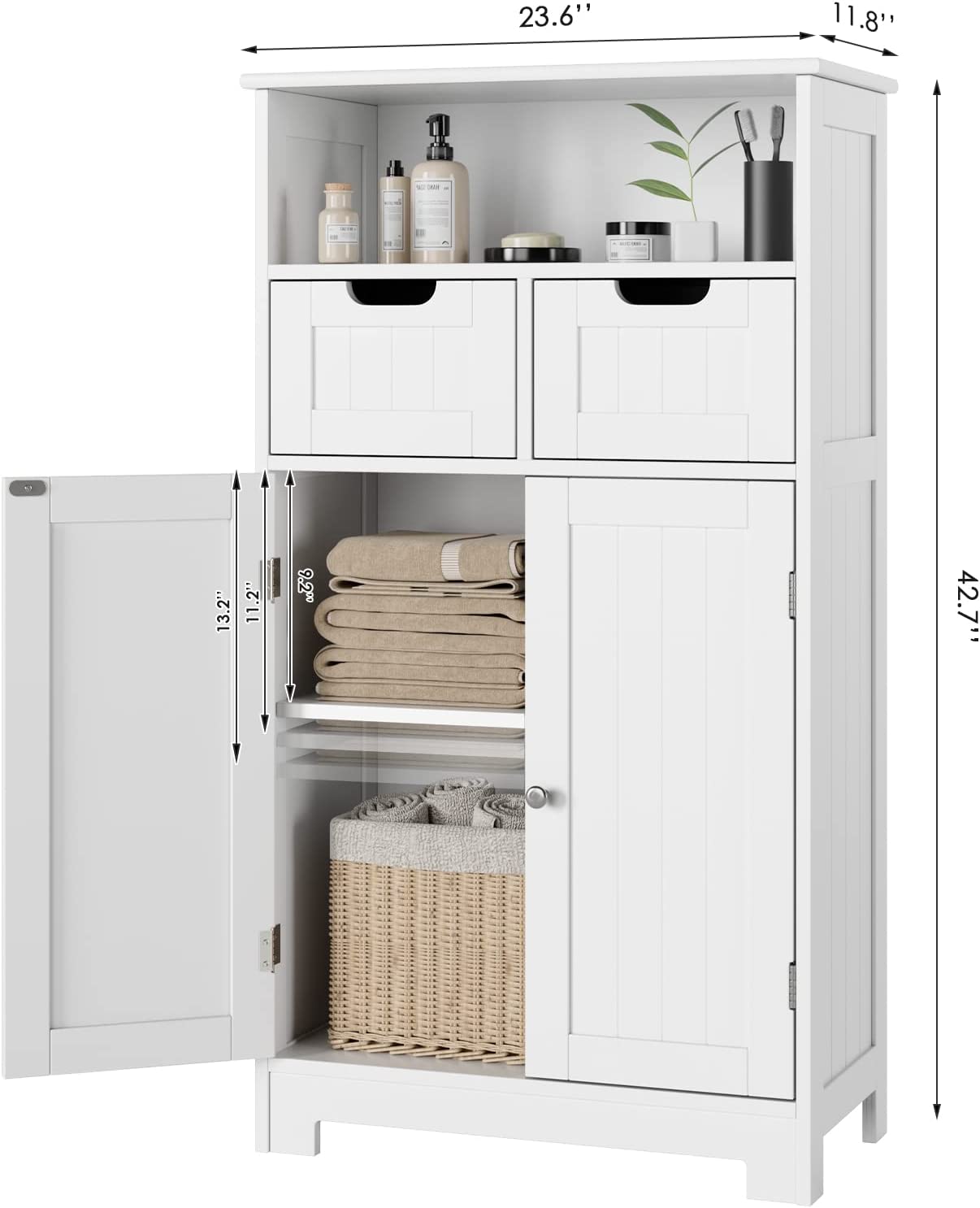 HORSTORS Bathroom Cabinet, Floor Storage Cabinet with 2 Doors and 2 Drawers, Free Standing Wooden Storage Organizer for Bathroom, Living Room, Hallway, White