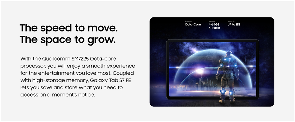 - BIG SCREEN, BIG EXPERIENCE: A large 12.4 inch display brings your content to life in brilliant color whether indoors or outdoors, making Samsung Galaxy S7 FE a great tablet for study time or for a quick entertainment break