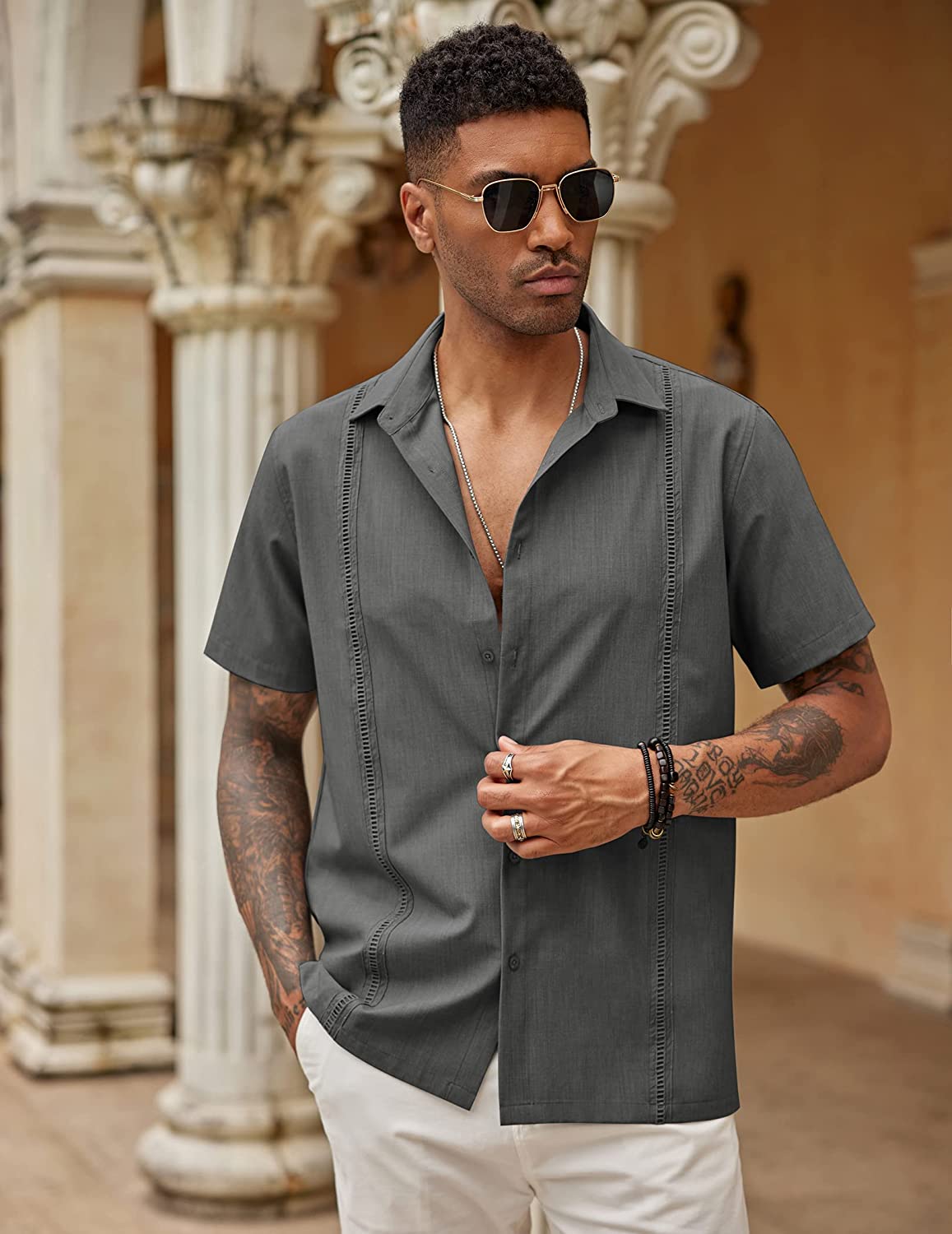 - SOFT FABRIC - Men's short sleeve cuban shirt is made of Premium material that can withstand repeated washing. Soft and Lightweight material to make yourself cool, comfortable and relaxed.