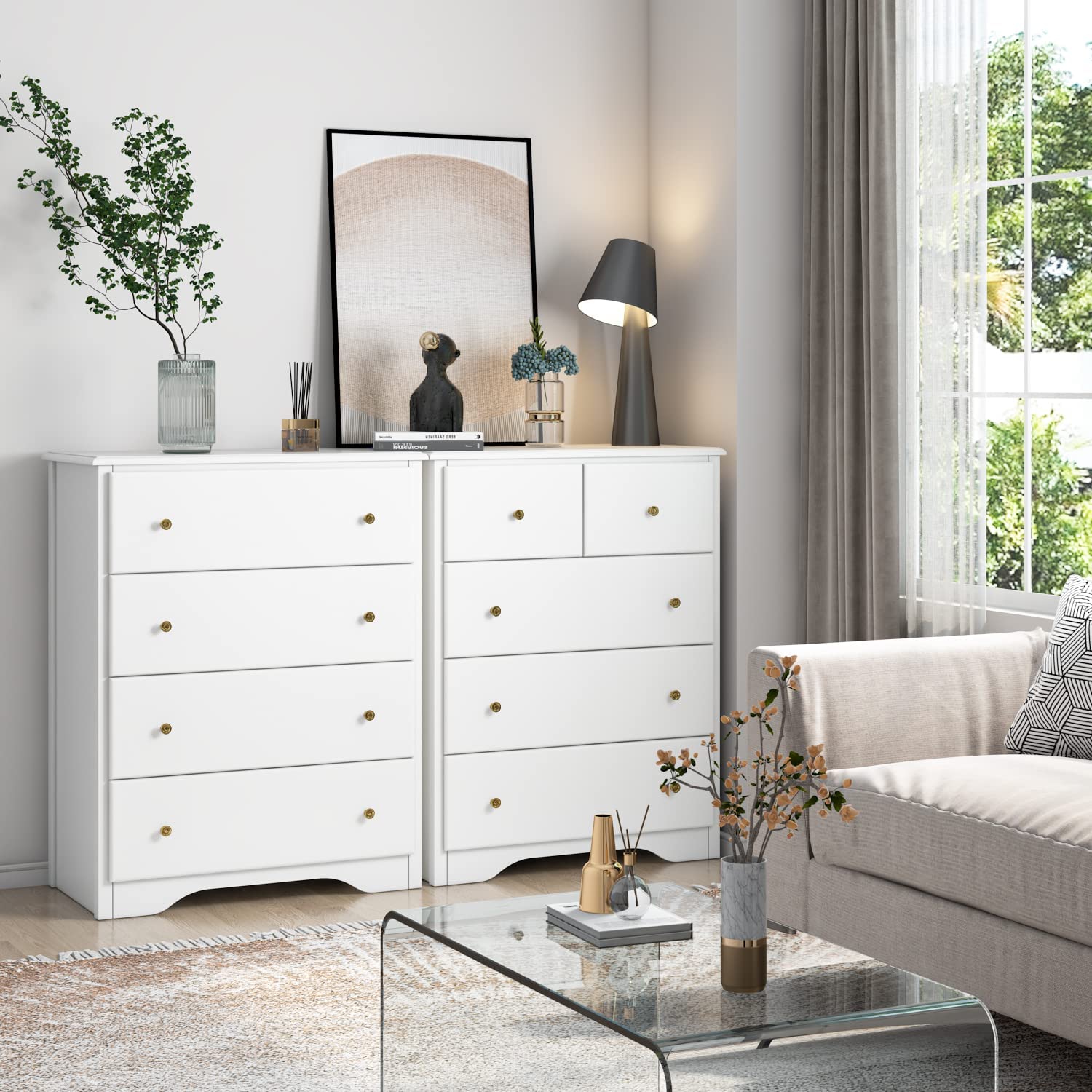 Premium Material - Constructed of high-grade MDF, premium metal slides that can be pushed and pulled smoothly, the white dresser meets your pursuit of quality. The surface is coated with environmentally friendly paint, which is waterproof and easy to clean