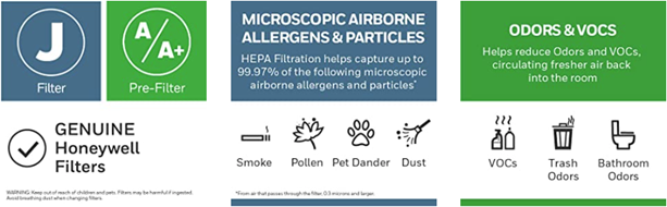 • GENUINE FILTER REPLACEMENTS – Search B003UH9I2G for Honeywell HRF-AP1 replacement pre-filter and B09NB2SVXN for HRFJ830 replacement primary filter.