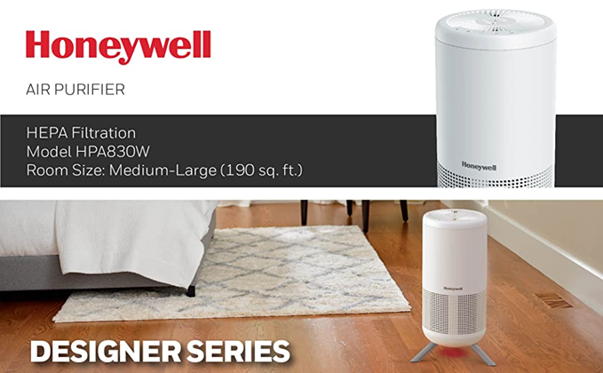 • EFFECTIVE AIR CLEANING AND CIRCULATION – The Honeywell HPA830 Air Purifier features 3 cleaning levels and is independently tested and AHAM Verifide to circulate and filter room air up to 4.8x per hour in a 190 sq. ft. room.**