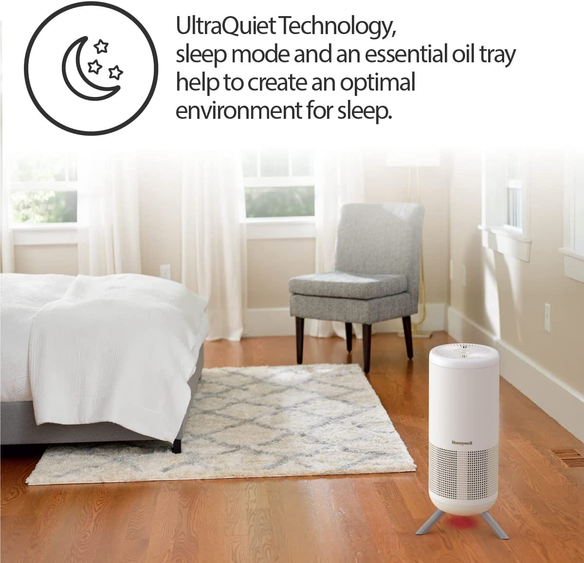 • ULTRA-QUIET TECHNOLOGY – The Designer Series HEPA Air Purifier is the ideal air purifier for bedrooms. It features UltraQuiet Technology, sleep mode and an essential oil tray for optional aromatherapy to help create an optimal environment for sleep.
