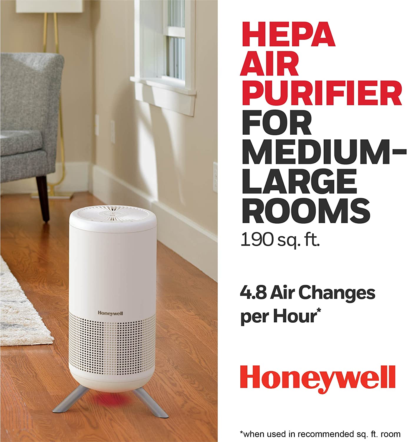 • MED-LARGE ROOM AIR PURIFIER – Honeywell HPA830W HEPA Air Purifier with 360 degree intake helps capture up to 99.97% of the following microscopic airborne allergens and particles: dust, pollen, pet dander, dust mite debris and smoke.*