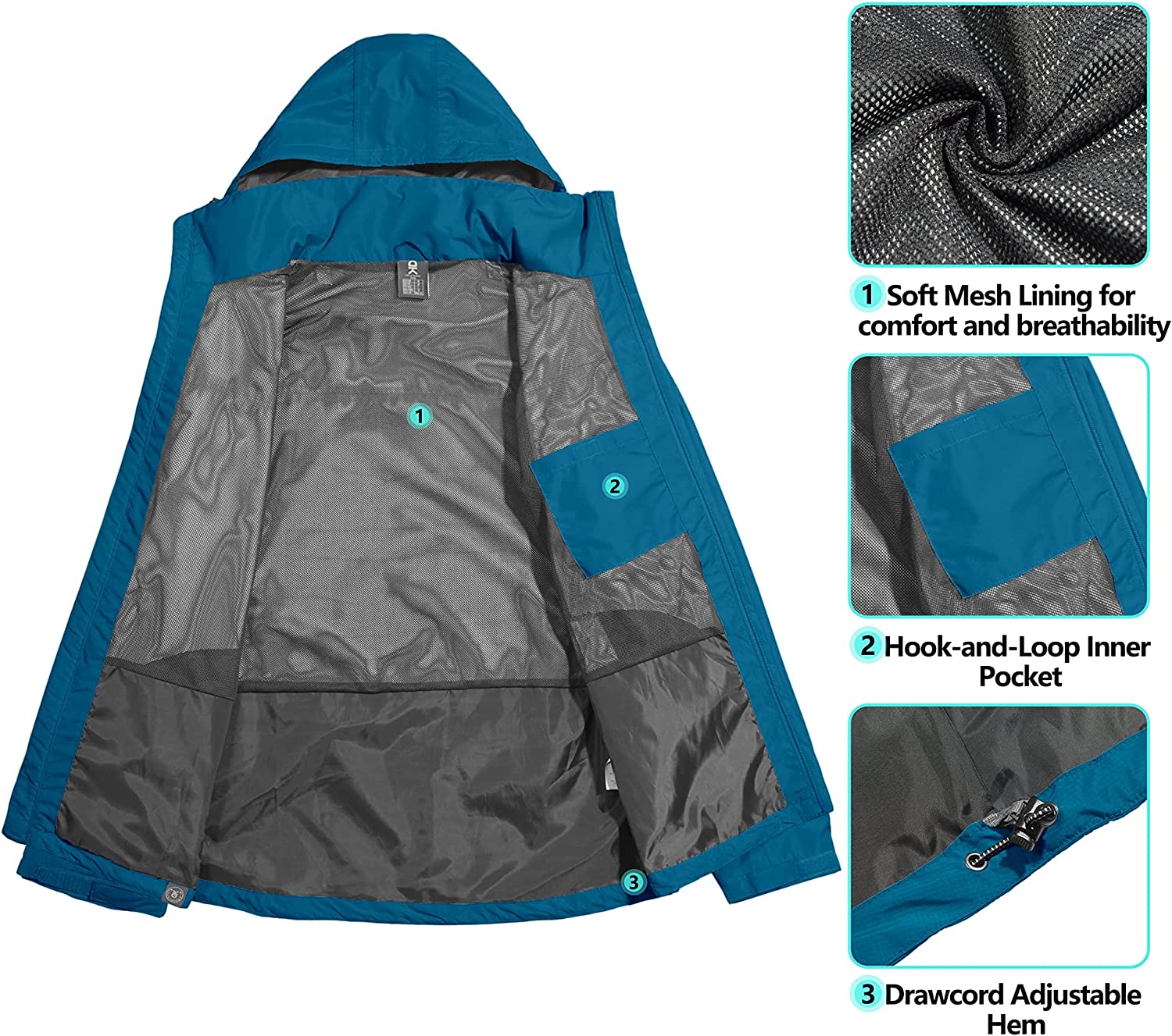 LIGHTWEIGHT, QUICK DRY, BREATHABLE: Mens lightweight rain jacket with 100% Polyester fabric provides good breathability, dries quickly. Soft mesh lining adds to the comfort and helps wick the moisture away