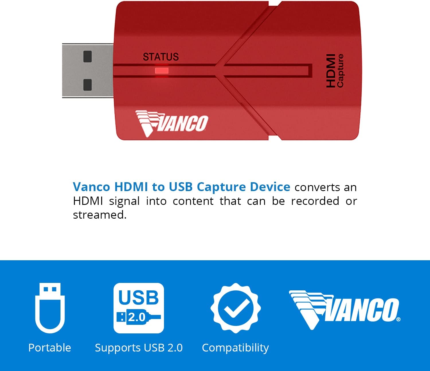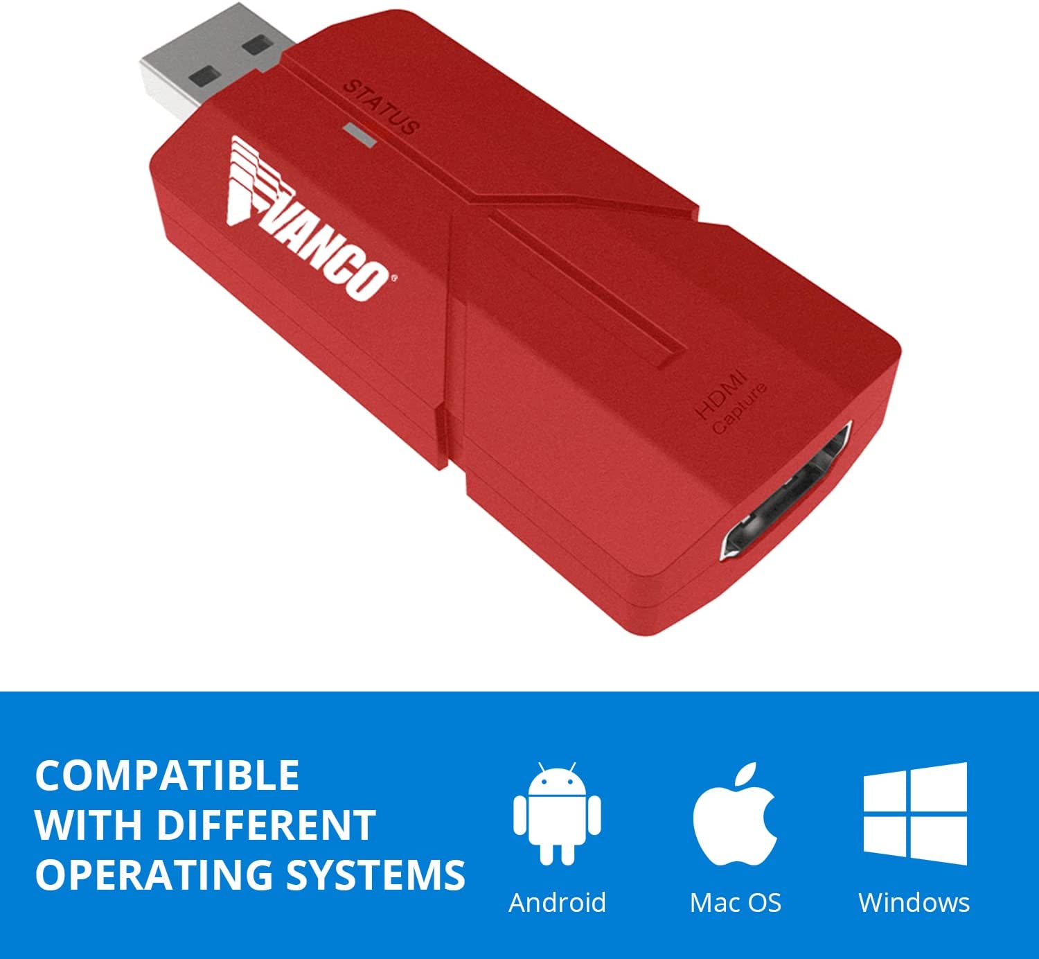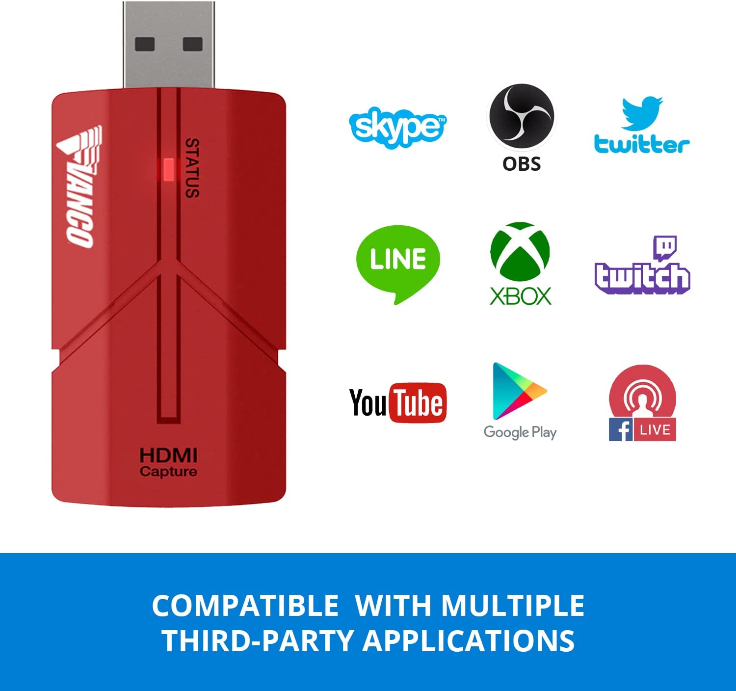 EASY PLUG AND PLAY: The Vanco HDMI to USB Capture Device does not need to install any driver and external power supply as it's a portable streaming capture video device